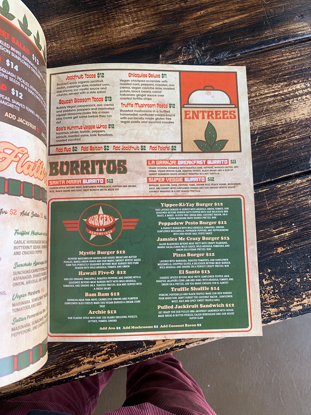 Loved the mushroom burger. The burritos were spicy. The açaí bowls were great outdoor seating