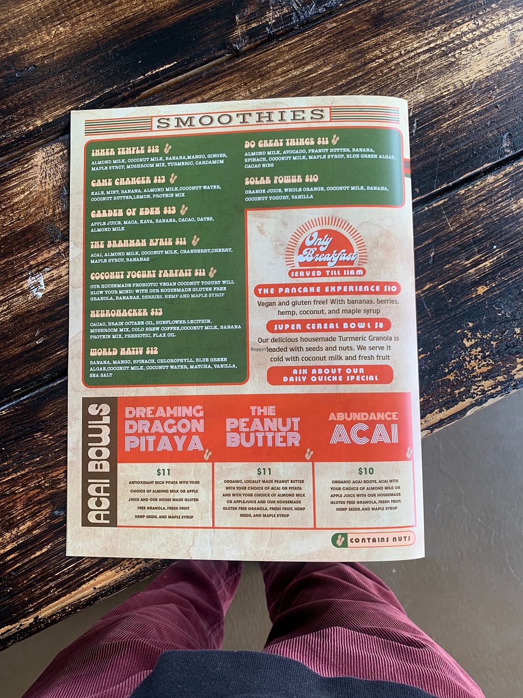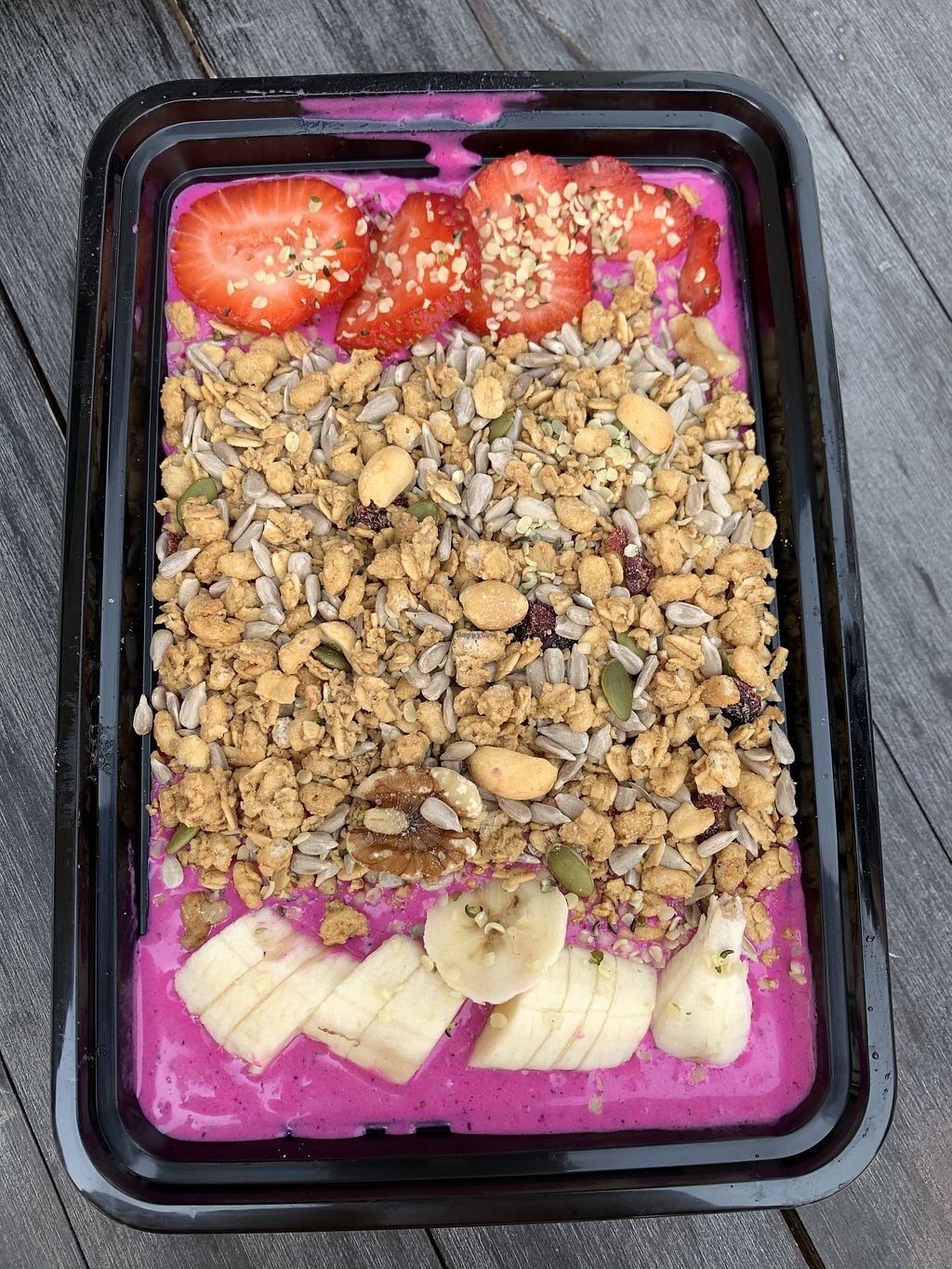 I ordered their peanut butter acai bowl. I expected to see pb, granola, fresh strawberries, bananas and coconut. But really just got a sprinkle of that under 16oz of berry smoothie in a cup. For 13$. I was not impressed. But I know times are difficult rn and will give it another try because I had good experiences at the Encinitas location.