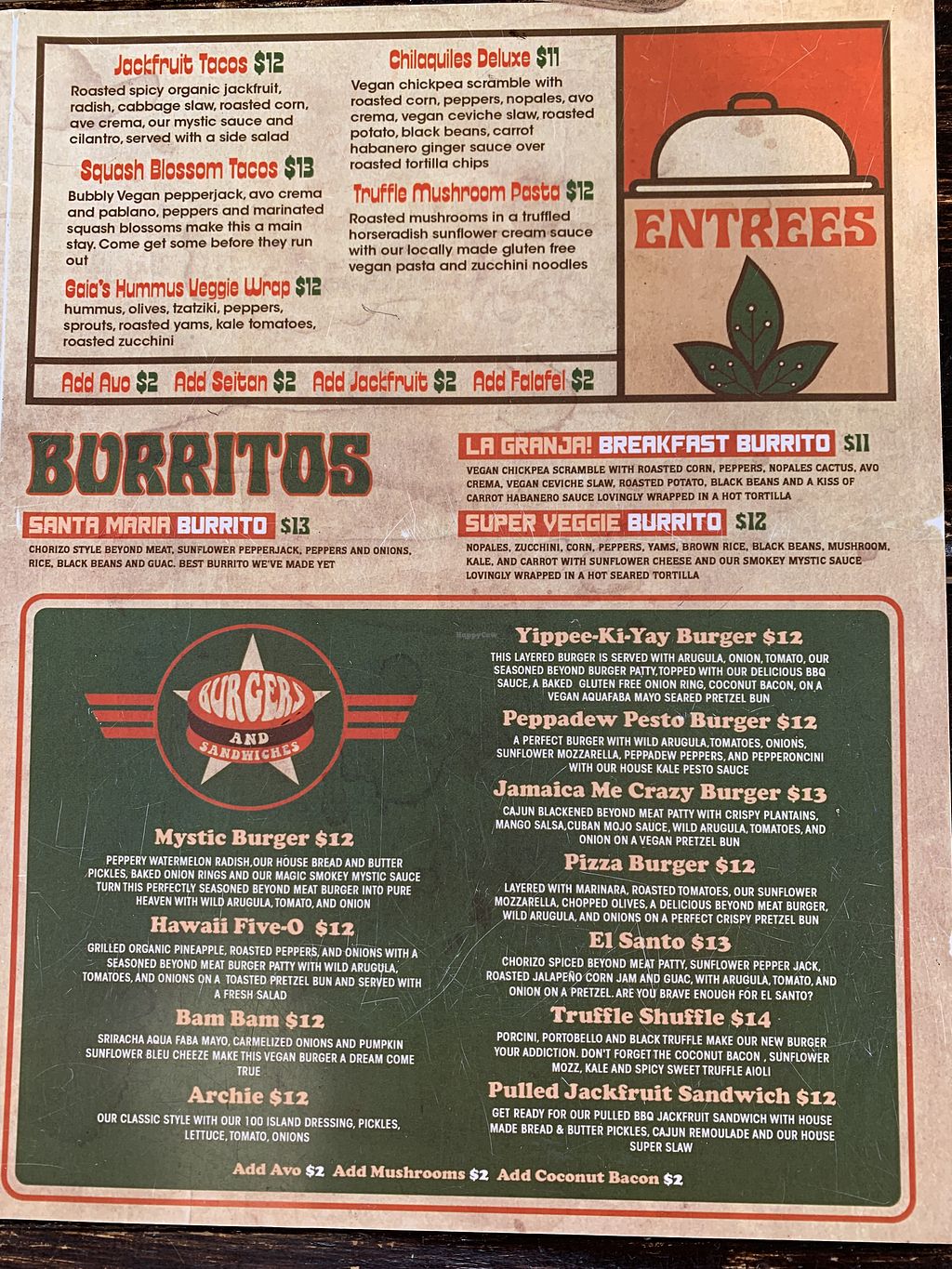 The service mixed with delicious vegan food was the perfect blend for a cozy night. Ended up getting the Magic meatballs as a starter (so delicious). Then ordered the Santa Maria burrito, Yippe burger with avocado & grilled onions. Couldn’t help ourselves, so we ended up getting the pulled jackfruit sandwich. Highly recommend to stop in & try some of the delicious vegan food this place has to offer. We’ve driven to the Encinitas location, and were so stoked that now there’s an Eve closer to us. Plus the parking is way better then the Encinitas location. Stop in & enjoy what this place has to offer.