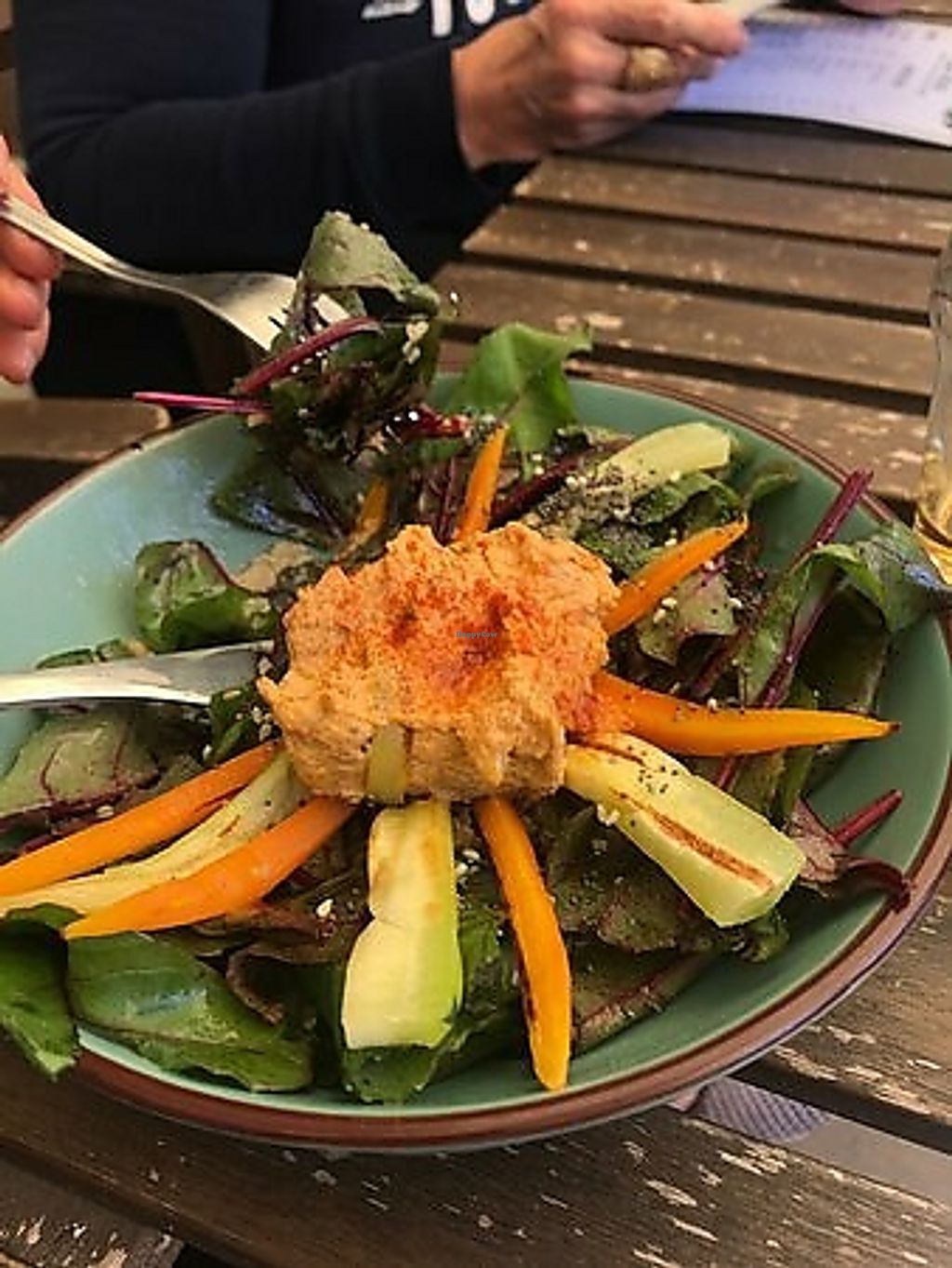 Great location with plenty of shady outdoor seating. The restaurant is perfect if you have kids as it is right on the play park, they can play whilst you eat. Completely vegetarian menu with lots of Vegan options. Super friendly staff / owners. Great selection of beers including some nice local IPA's. Portion sizes are great and the food was delicious.