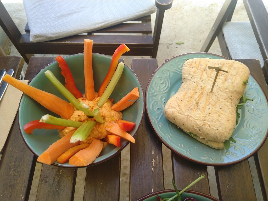 Pros: Primarily vegan menu, Great setting and friendly staff, Lots of Cypriot cats (and they like vegan tuna)