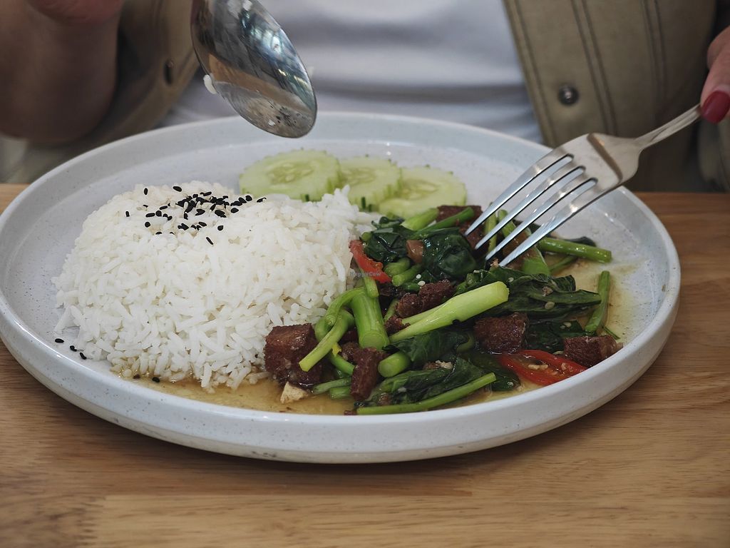 Vegetarian restaurant and coffee bar. Serves mostly Asian dishes with mock meat. Has a Thai Jay section offering vegan, no egg, onion & garlic dishes. Open Mon-Wed 8:30am-7:30pm, Fri-Sun 8:30am-7:30pm. Closed Thu.