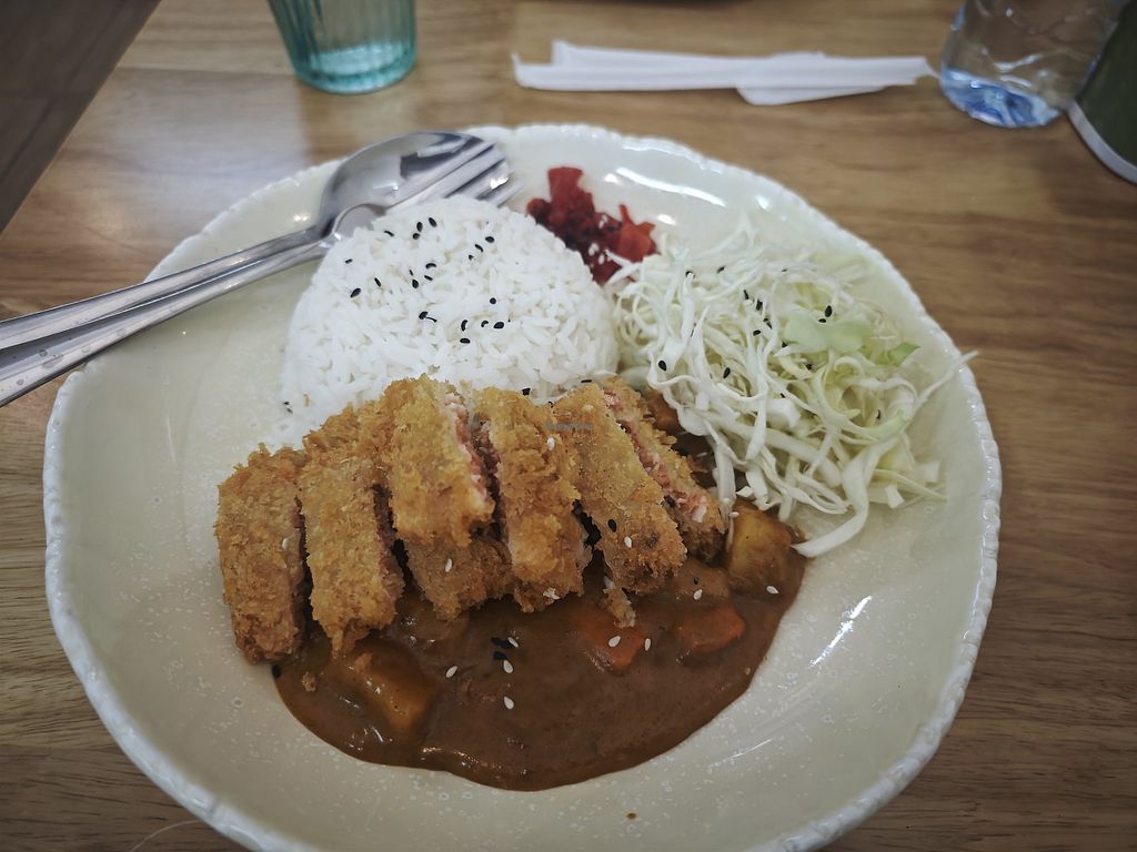 Cute tiny restaurant with a good number of seats indoors with Aircon. Coffee wasn't very good and came in a disposable cup while I was eating in. Water came with plastic straws in glass cups. Food was very sweet, looked nothing like on the menu. Have pasty puffs for sale outside the restaurant too. Hard area to find parking. Didn't enjoy my visit.