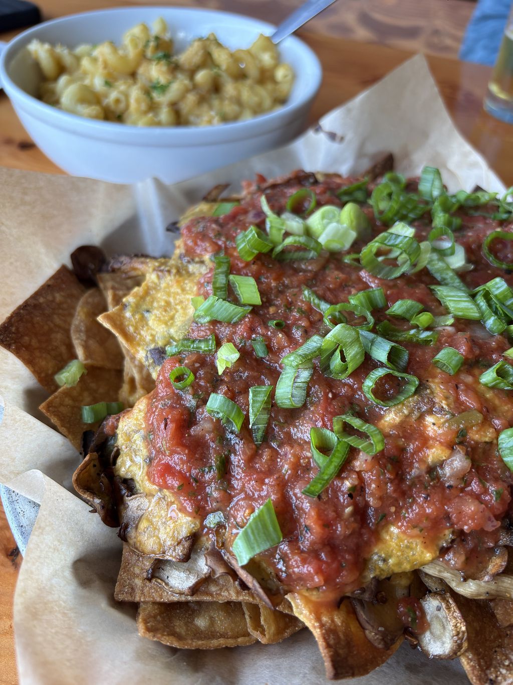 The vegan nachos were loaded and tasted great in the fresh air with a beer. Also ordered the vegan Mac & cheese which was a little dry, but was OK because I was eating delicious vegan nachos in the fresh air with a beer.