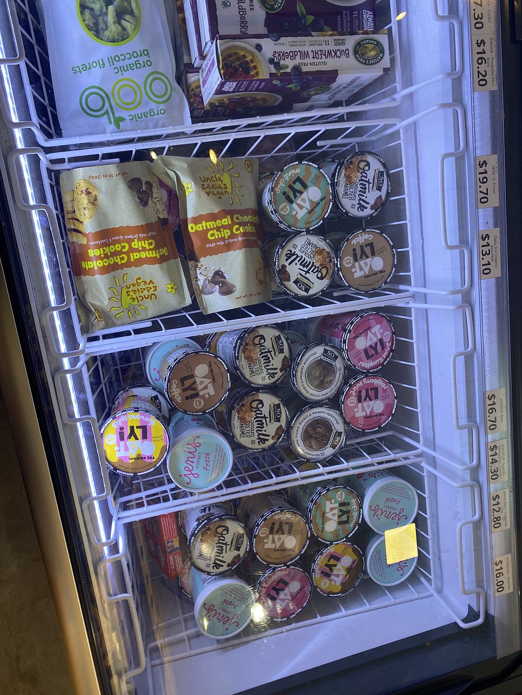 Extremely comprehensive vegan grocer offering vegan products from all over the world! They also offer vegan and soft serve using an last base.