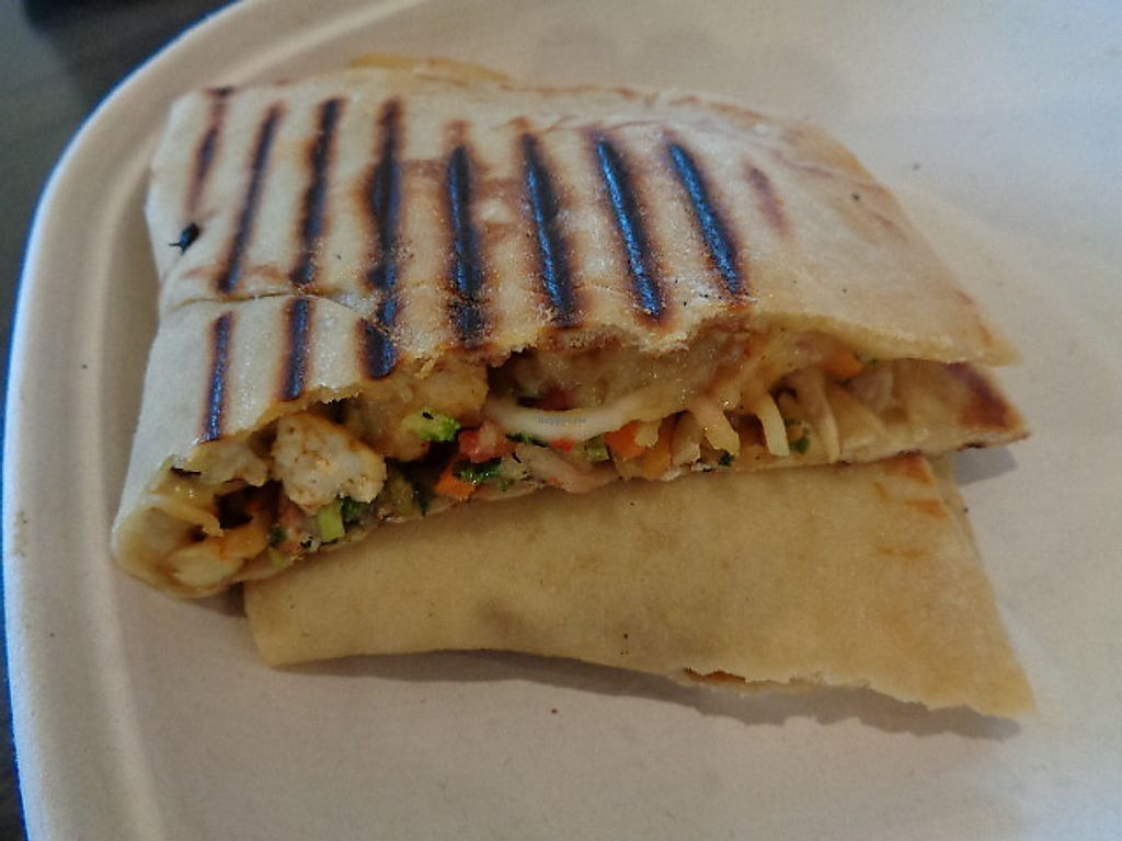 Buffalo Chickpea Panini. Chickpeas, buffalo sauce, cheddar, roasted br…