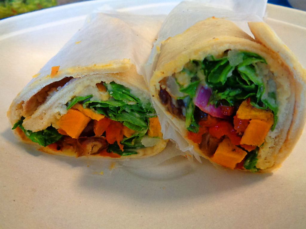 HUMMUS AND VEGGIE COLD WRAP: hummus, cucumber, roasted red peppers, za…