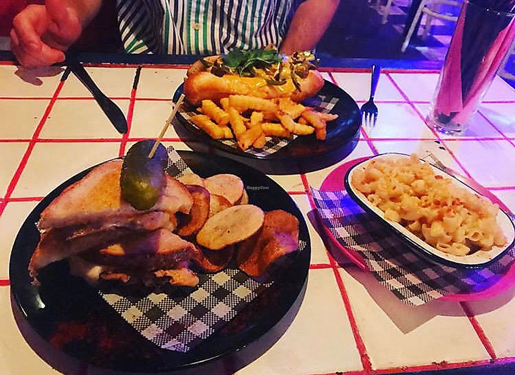 Vegan mac n cheese, vegan Reuben and the Philly Cheesesteak
