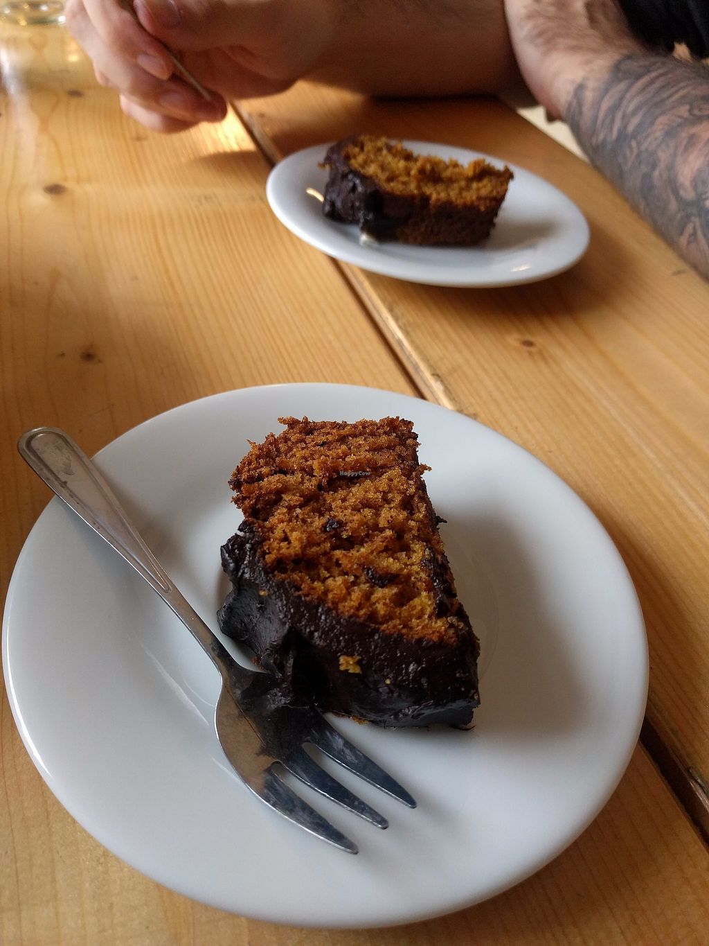 Salad with potato hash, savoury potato roulade, goulash. All very tast…