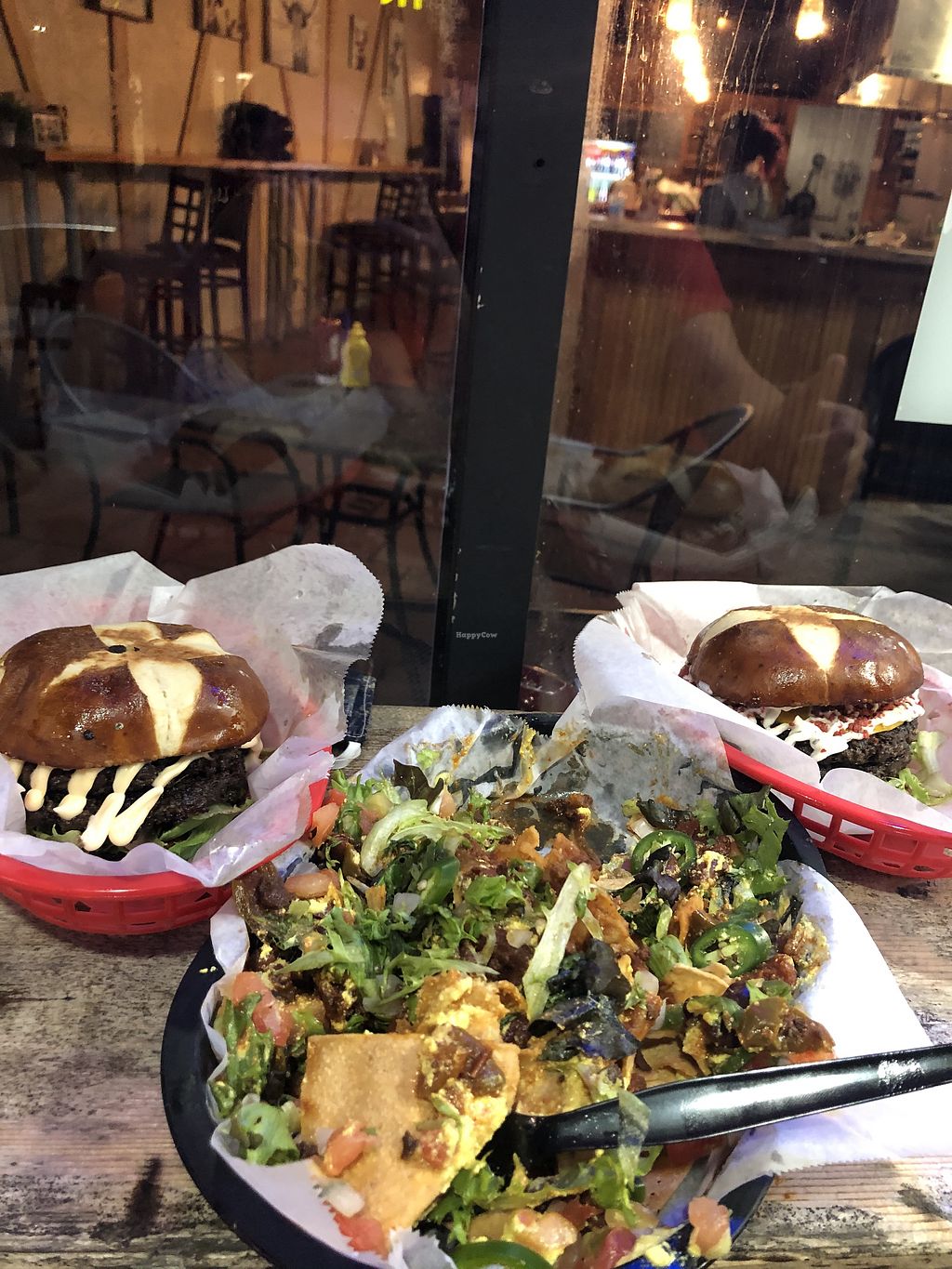 From left to right- Thee evolve smash burger, nachos (partially devour…