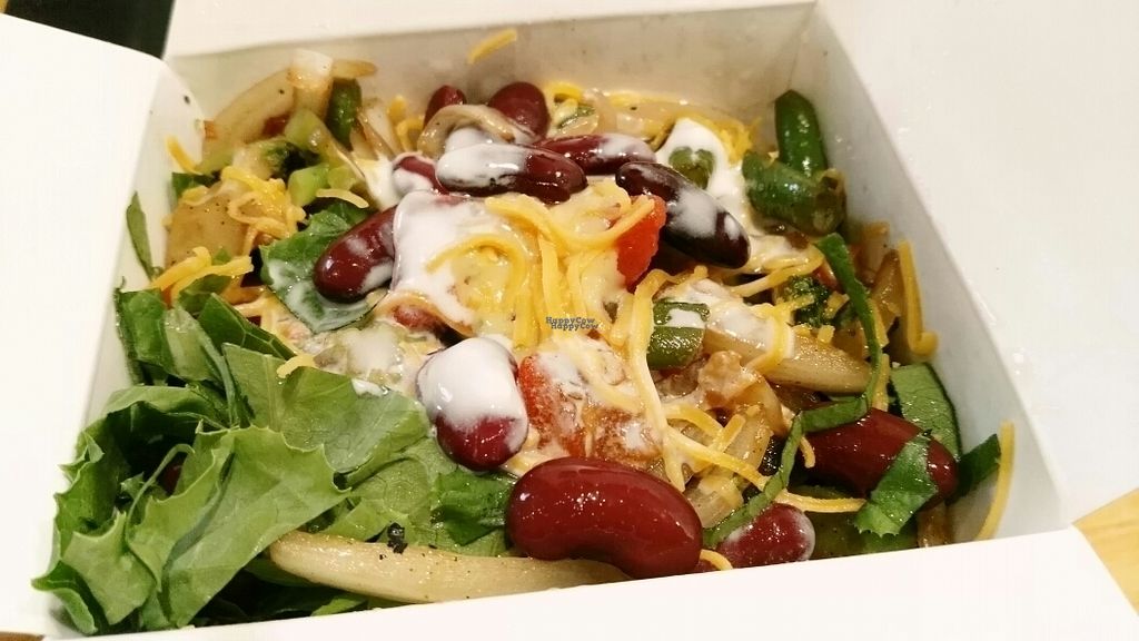 This place is awesome for grabbing a quick bite to eat. They have two veg-friendly options, a vegetable burrito (grilled veggies, beans, spanish rice) and a mushroom burrito. Be sure to ask for no sour cream + cheese!