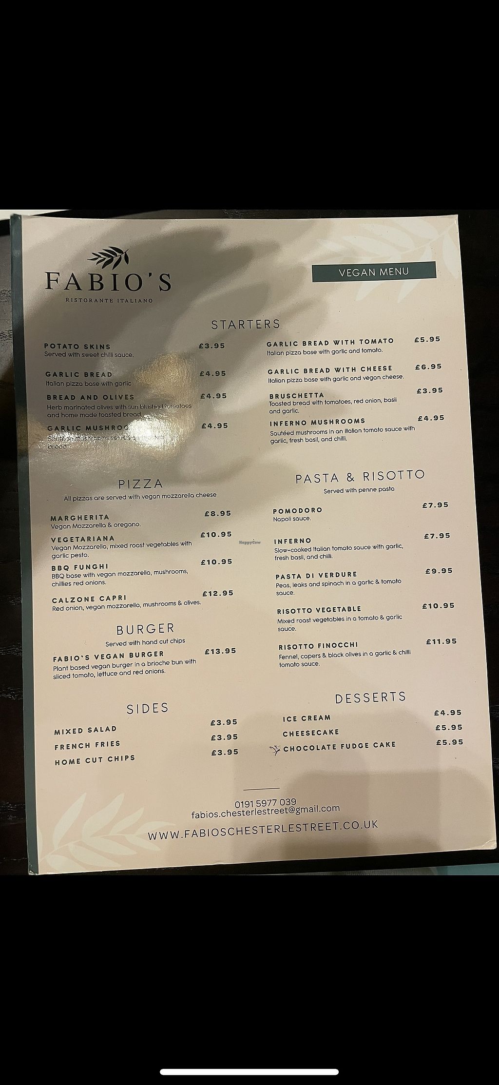 Vegan menu