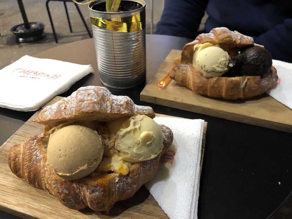 Delicious croissant, vegan, with very tasty, rich in flavor ice cream😄…