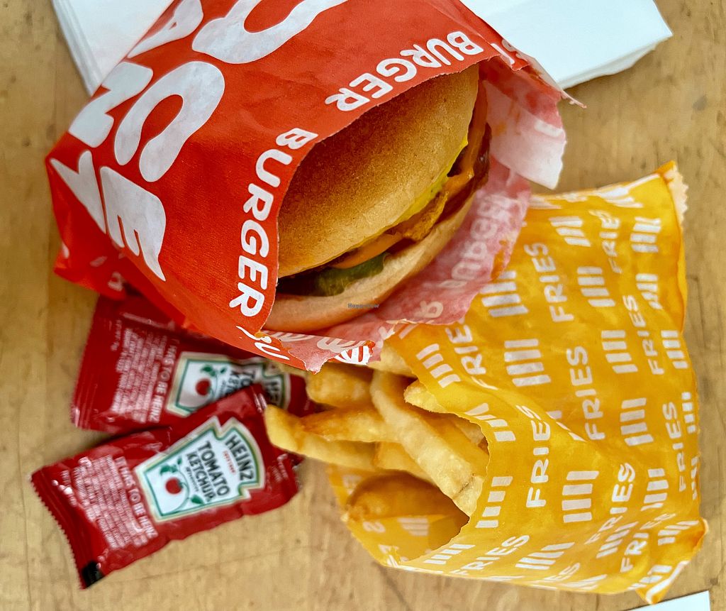 Stopped in for a burger and fries last week and pleasantly surprised. I’m picky about fries but theirs were very good. And you can get a side of their special sauce for dipping. I had the Fancy double burger and enjoyed it. Next time I’ll ask for extra pickles but otherwise a very good, not “fake” tasting veggie burger. Will definitely go again.