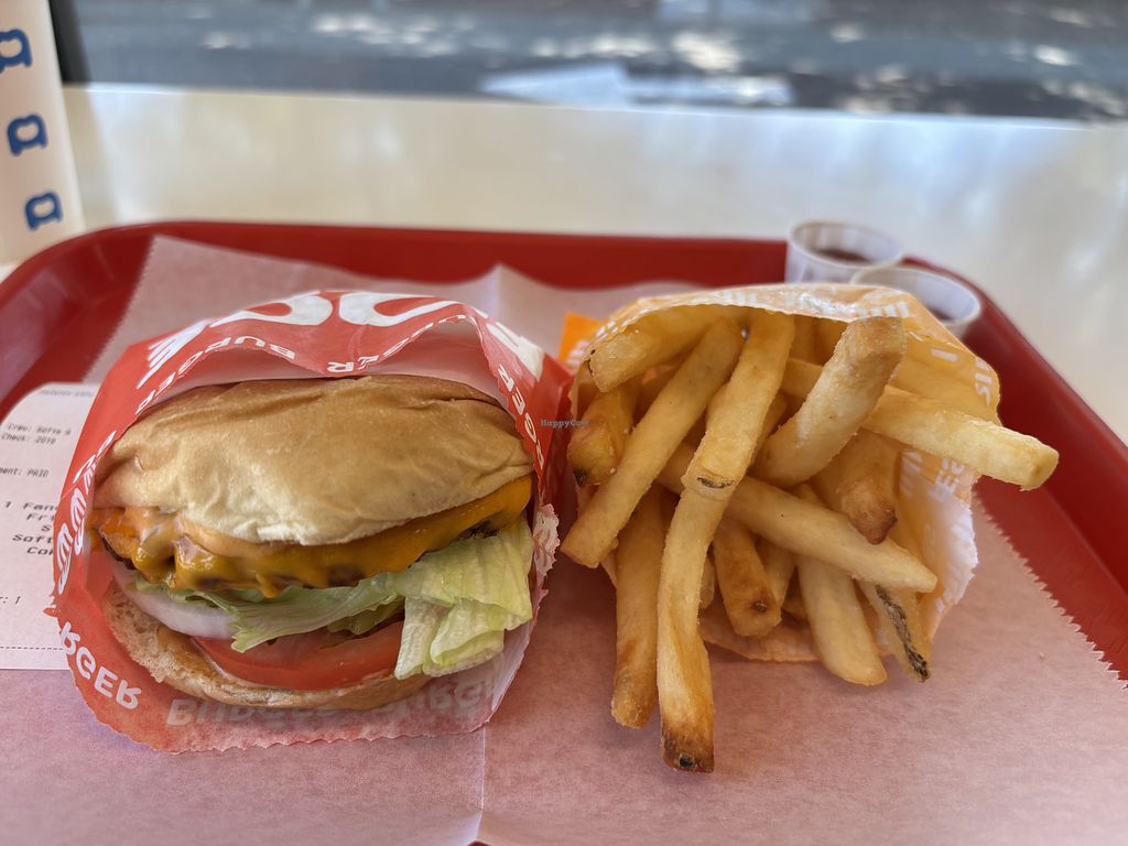 I’ve been here twice now, I think the Red & Yellow is the way to go over the Fancy, closer to McDonalds than the Fancy is to In-N-Out. Burgers are solid, but not the best I’ve had. Fries are also really solid, but not necessarily better than normal vegan fries at a non-vegan restaurant. Made a trip down from Vancouver to get it, and probably not worth it for that over going to Burgerville a few minutes away. But would happily get it if I was in the neighborhood. Going to try the shake and nuggets next time!