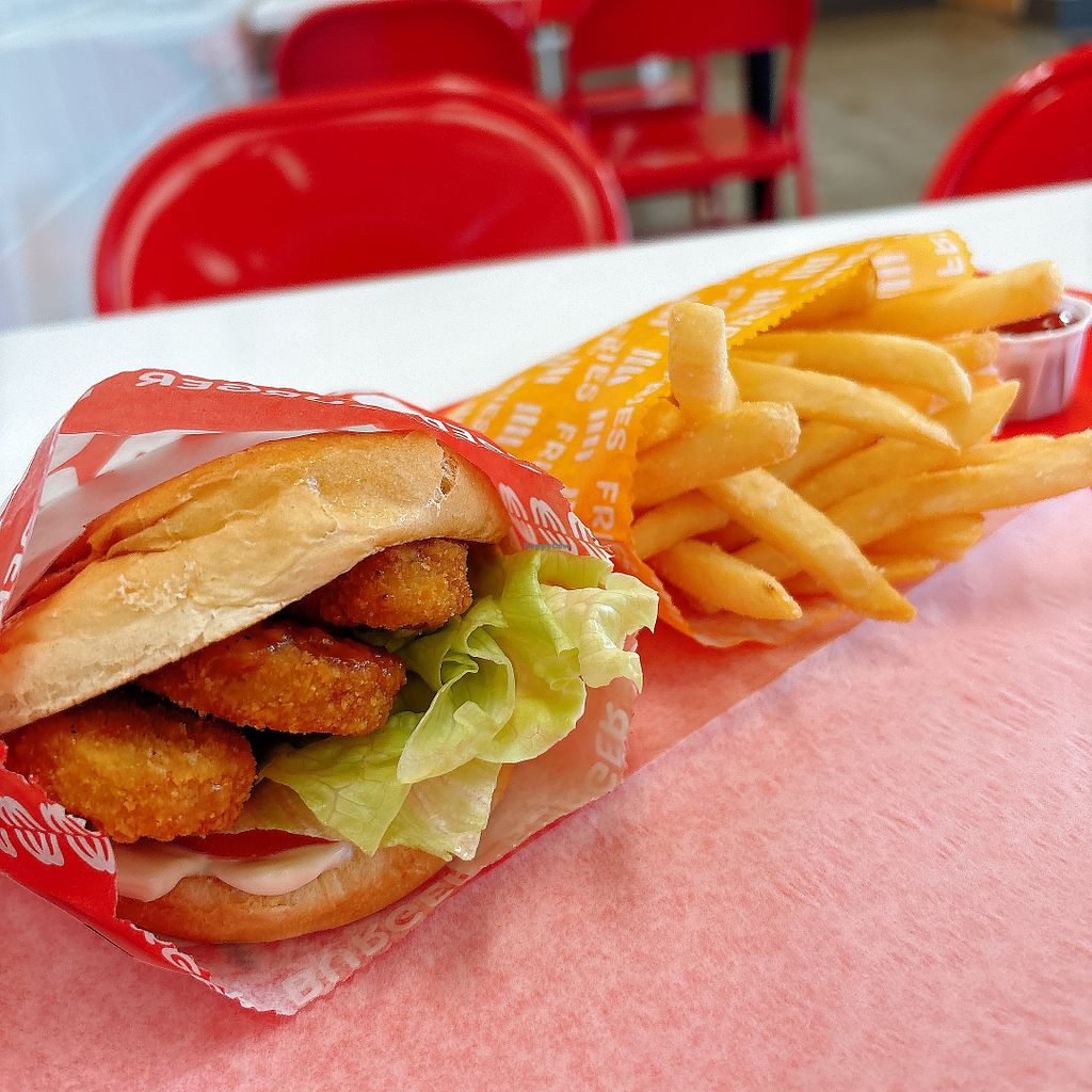 Fully vegan burger joint also serving nuggets, ice cream and fries. Has a drive-thru. Open Mon-Fri 9:30am-8:00pm, Sat-Sun 11:00am-8:00pm.