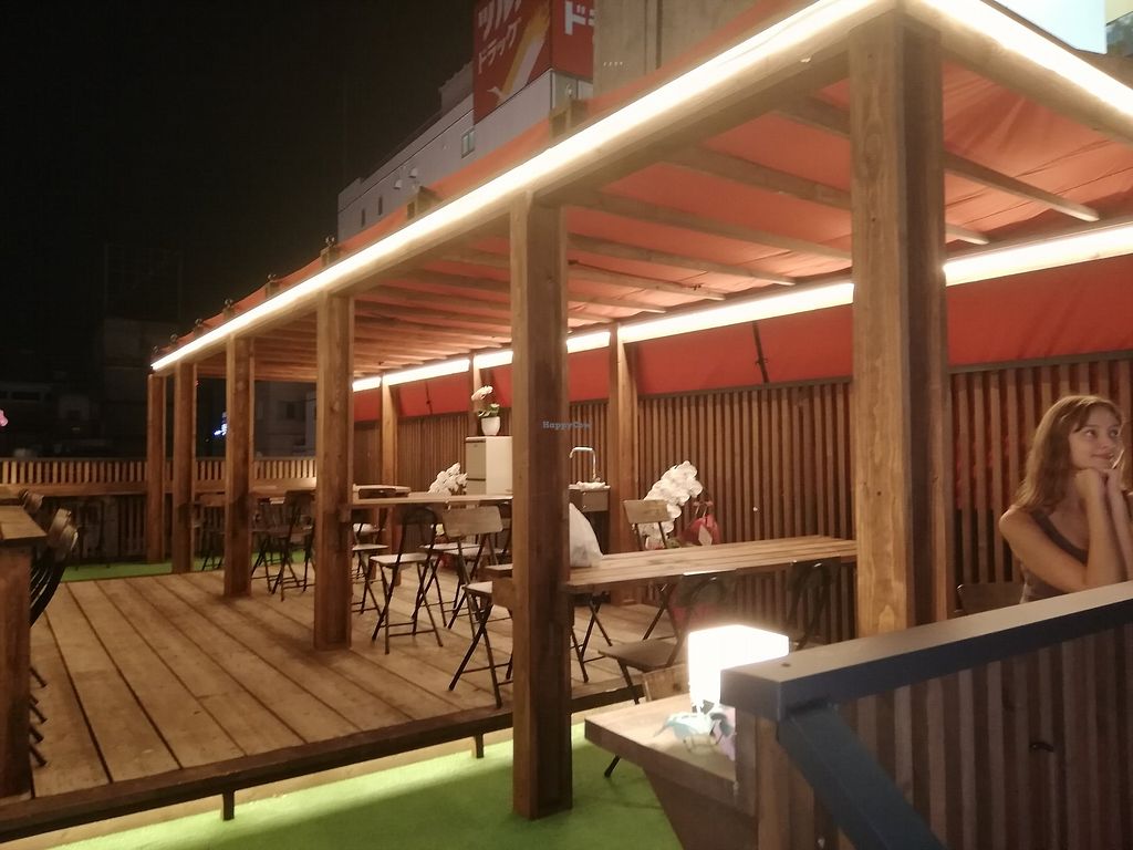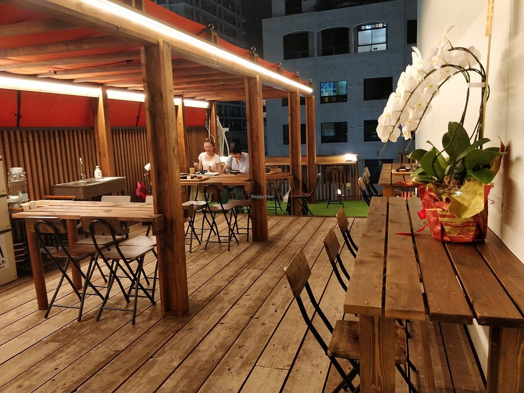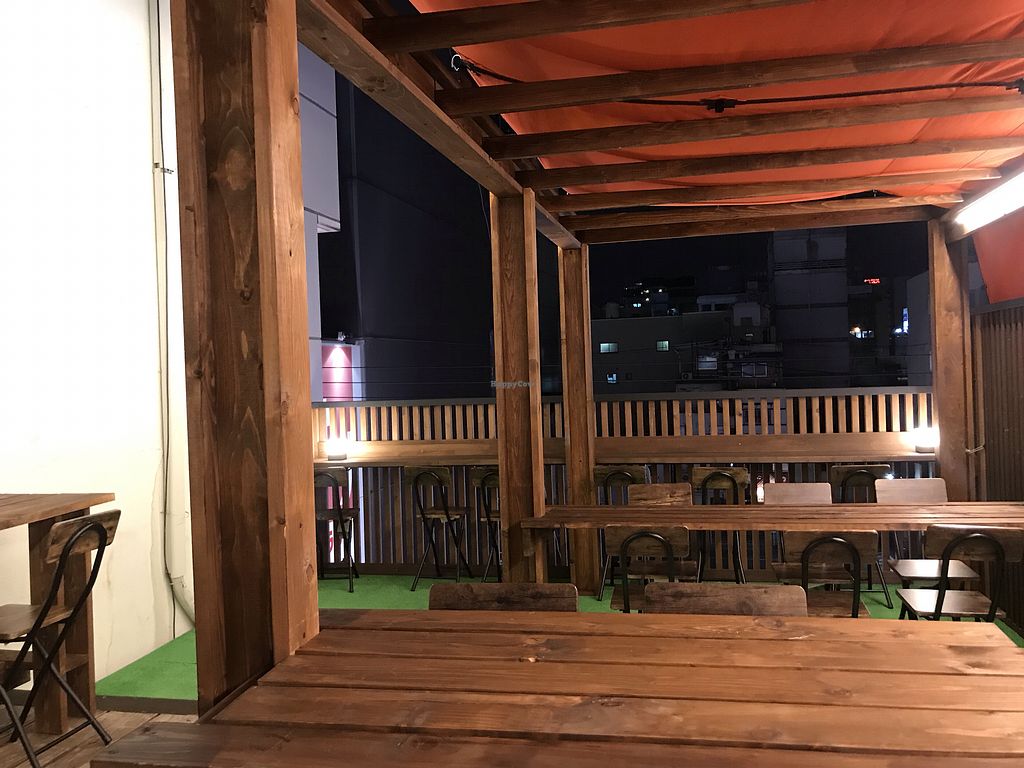 Beautiful outdoor seating area on the top of the building with a view …