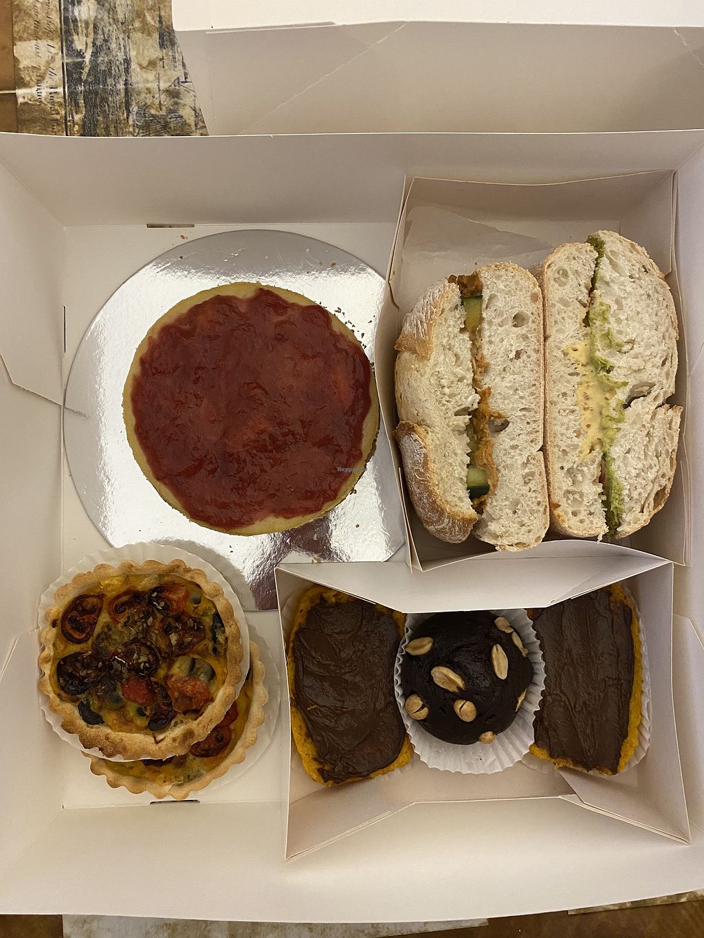 A vegan bakery with diverse sweet and savory options. Work based on orders made through social media accounts. As of April 2024, storefront is being built.