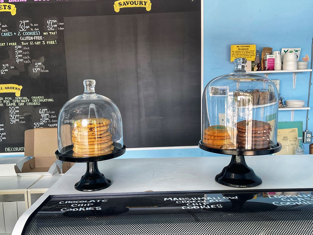 Vegan bakery opened 2012 and as of summer 2015 it's sharing a storefront with Chomp Vegan Eatery. Offers wide selection of baked goods and fresh fruit organic popsicles. Everything is peanut-free and nut-free. Specialty decorating, catering, and delivery available. Reported closed December 2022.