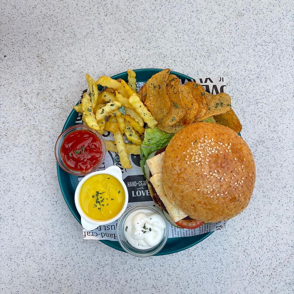 This is a serious veggie burger, our patty is made with tempe, mushrooβ¦