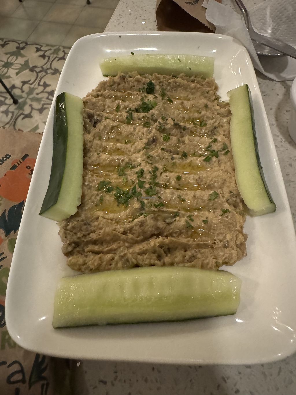 we had humous and falafel, the zatar bread and the lebanese rice and the only thing that was really flavourful was the zatar bread everything else was quite bland and it was expensive.