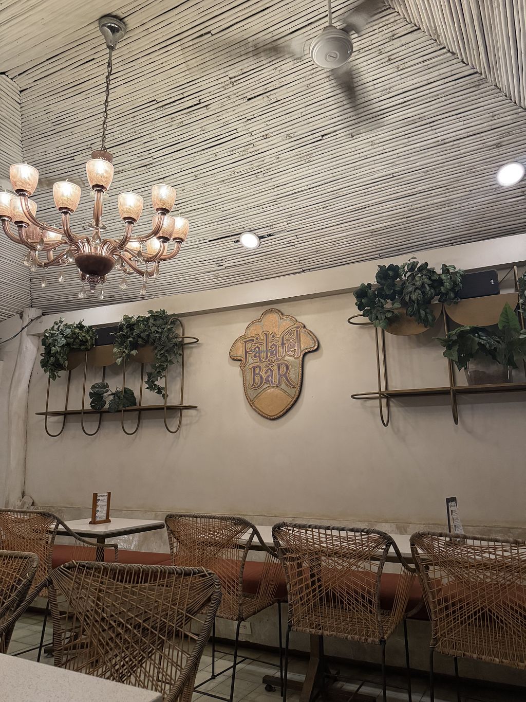 Read moreTiene algún postre vegano pero no los probé. Los falafels son crujientes y un poco secos. La bebida de sandía con hierbabuena está buena y es muy refrescante.