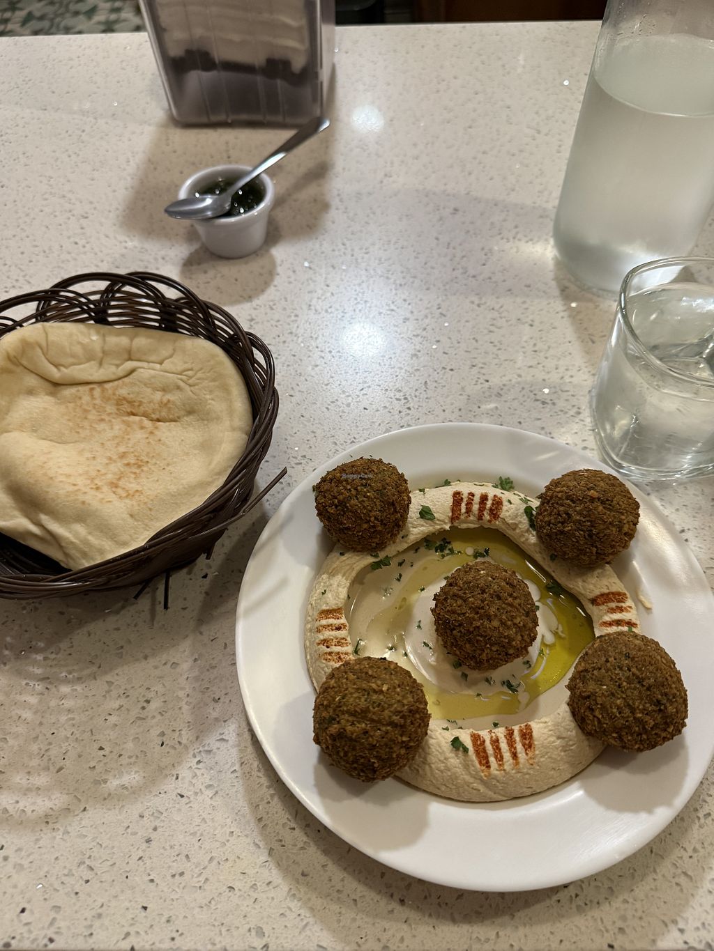 we had humous and falafel, the zatar bread and the lebanese rice and the only thing that was really flavourful was the zatar bread everything else was quite bland and it was expensive.