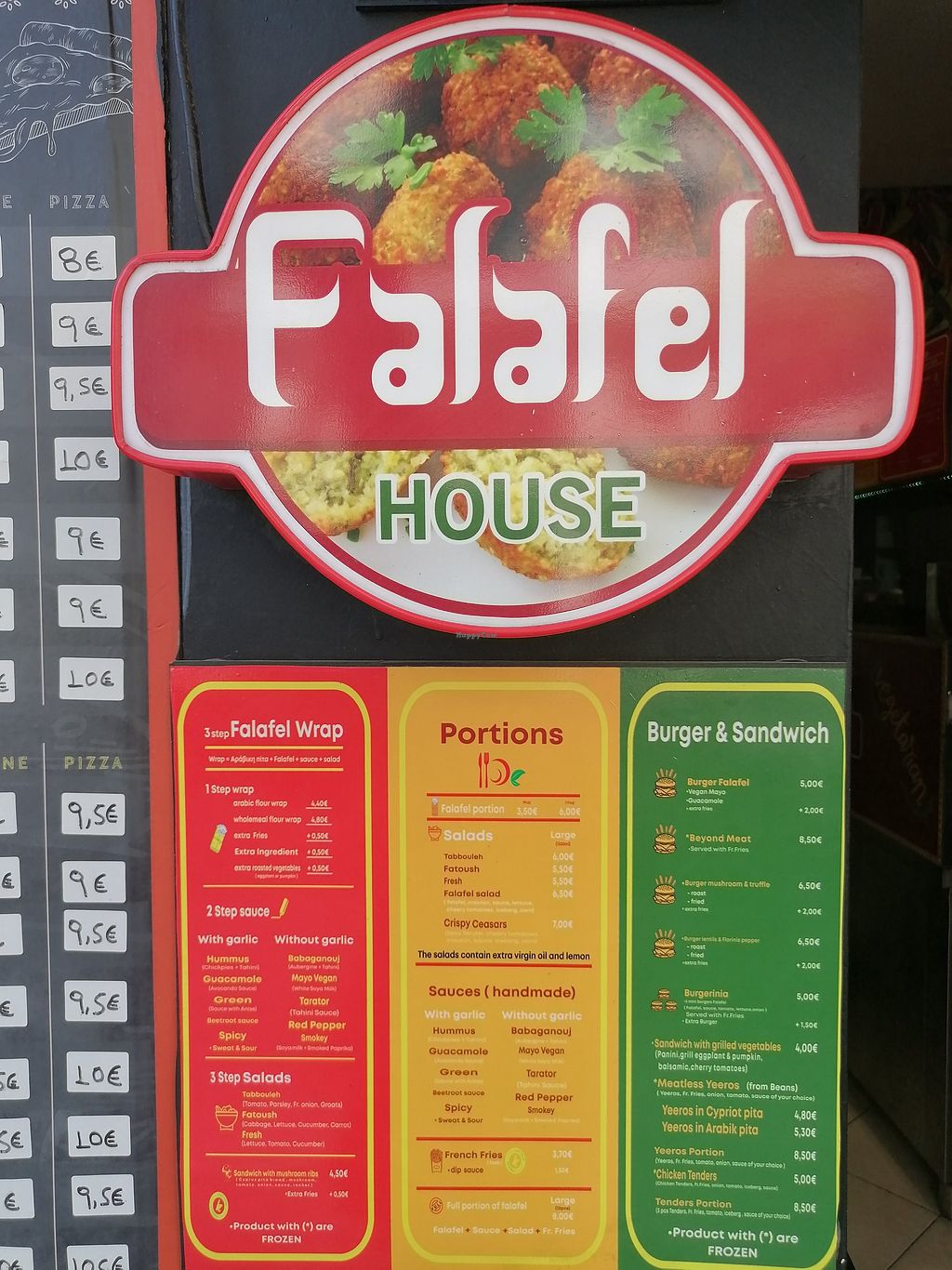 The menu for falafal now consists of pick your sauce, Humus or guacamole. Pick your filling ,veg salad or tabbouleh. Then with your falafal you can pick small medium or large.