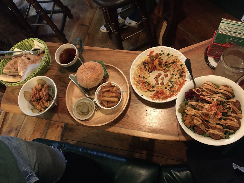 Christmas feast here was delicious! Always a reliable place to get something to eat! Definitely a must go place for anything falafel related! Main set up is either a falafel salad, pita or burger, however they have a variety of side dishes such as gyoza, karage, chill cauliflower bites and also a dinner menu with pizza. Easy access from Ebisu station also.