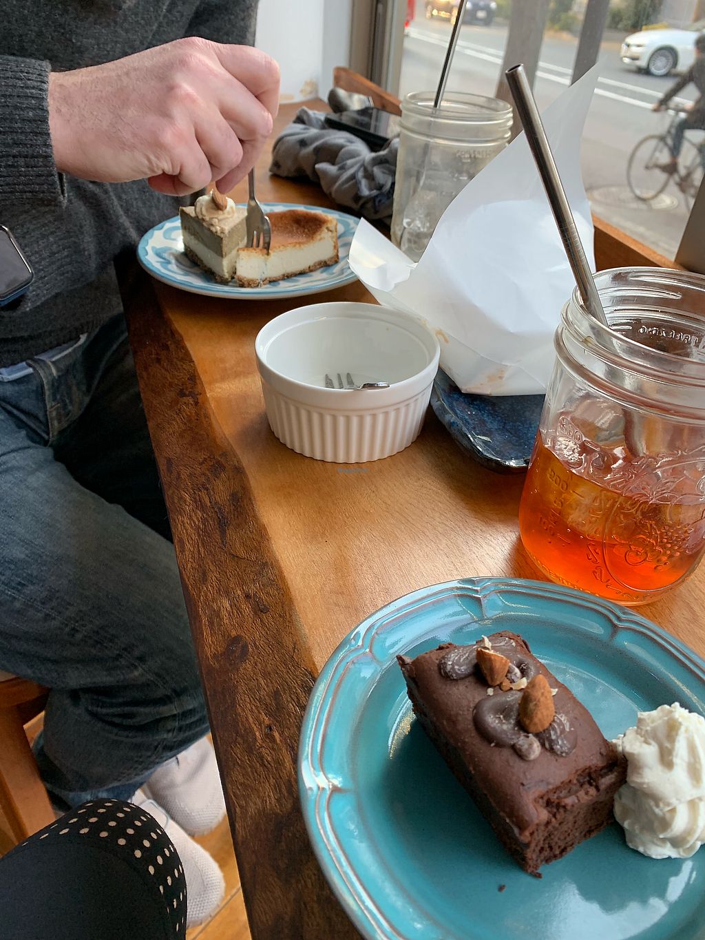 Of course if a restaurant offers vegan sweets, we have to try them! We went with the chocolate chip cookie, which was moist and delicious, and the houjicha cake. The cake in particular was a little pricey at 550 yen per slice, but it looked and tasted like it was made with love and care.