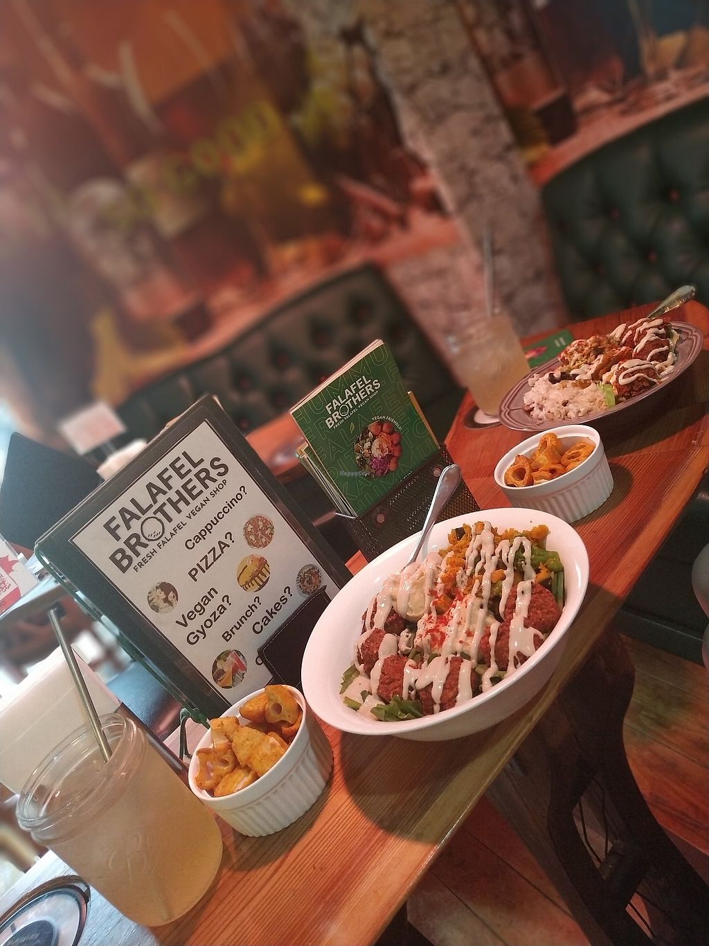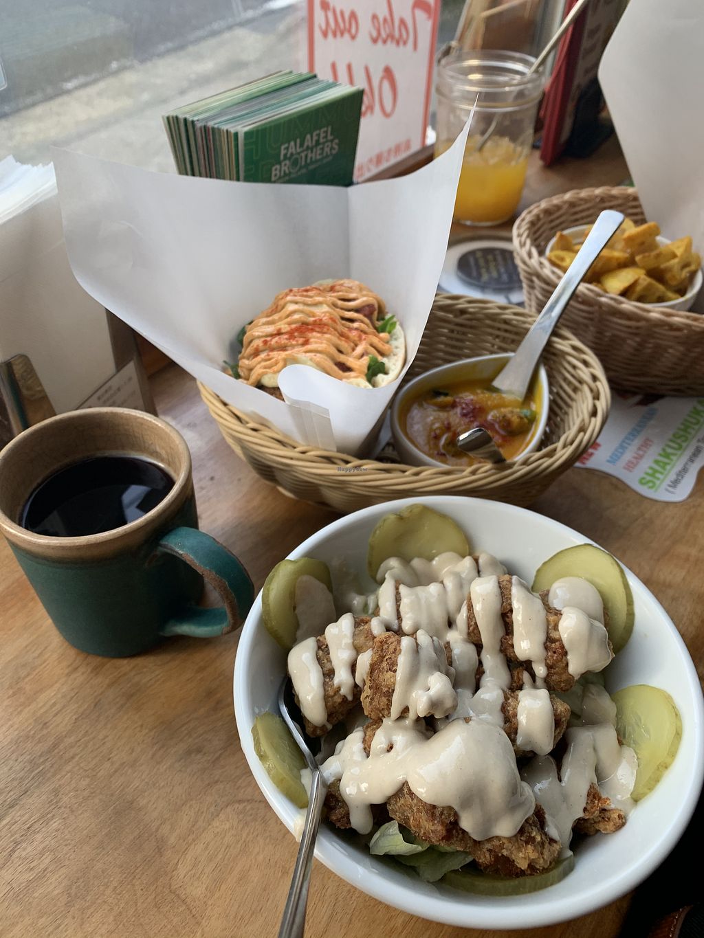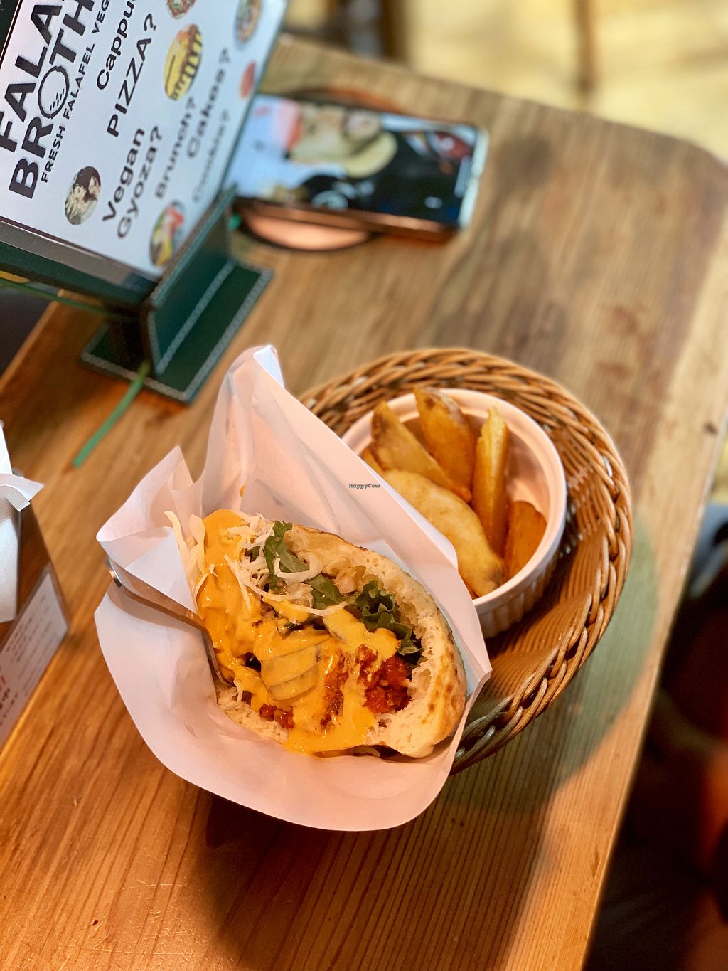 I’ve only tried the “brother’s sandwich” which is a falafel filled pita bomb, but it was great. The only issue is a classic one which is the liquid toppings sit on top or the bottom so the middle, which is where the falafel balls/discs actually sit and you want more moisture, is a little dry.