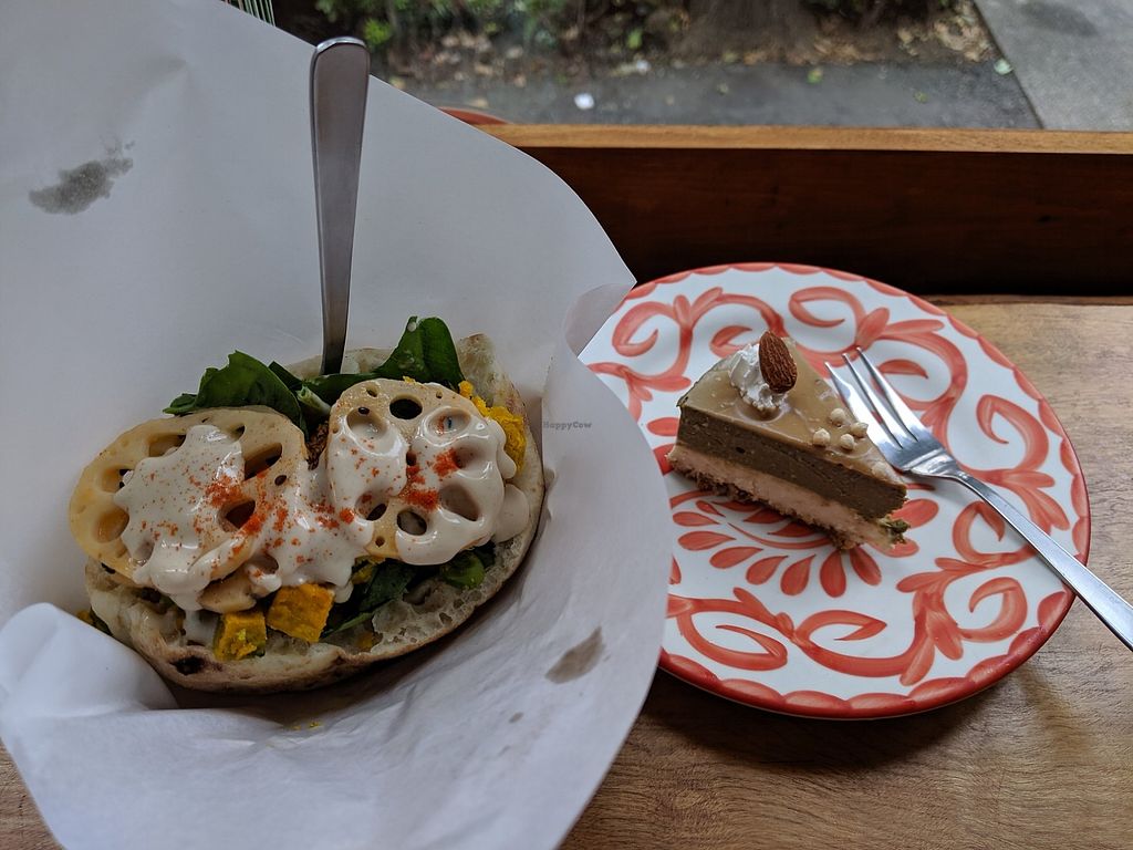 Read moreI got the half falafel sandwich and houjicha cake. When you order a falafel dish here, they let you choose two toppings and the sauce (three sauce choices, all of which are variations on tahini). The sandwich was tasty, and the pita was fluffier than the ones I've eaten in New York. The cake wasn't sweet, but definitely still enjoyable.