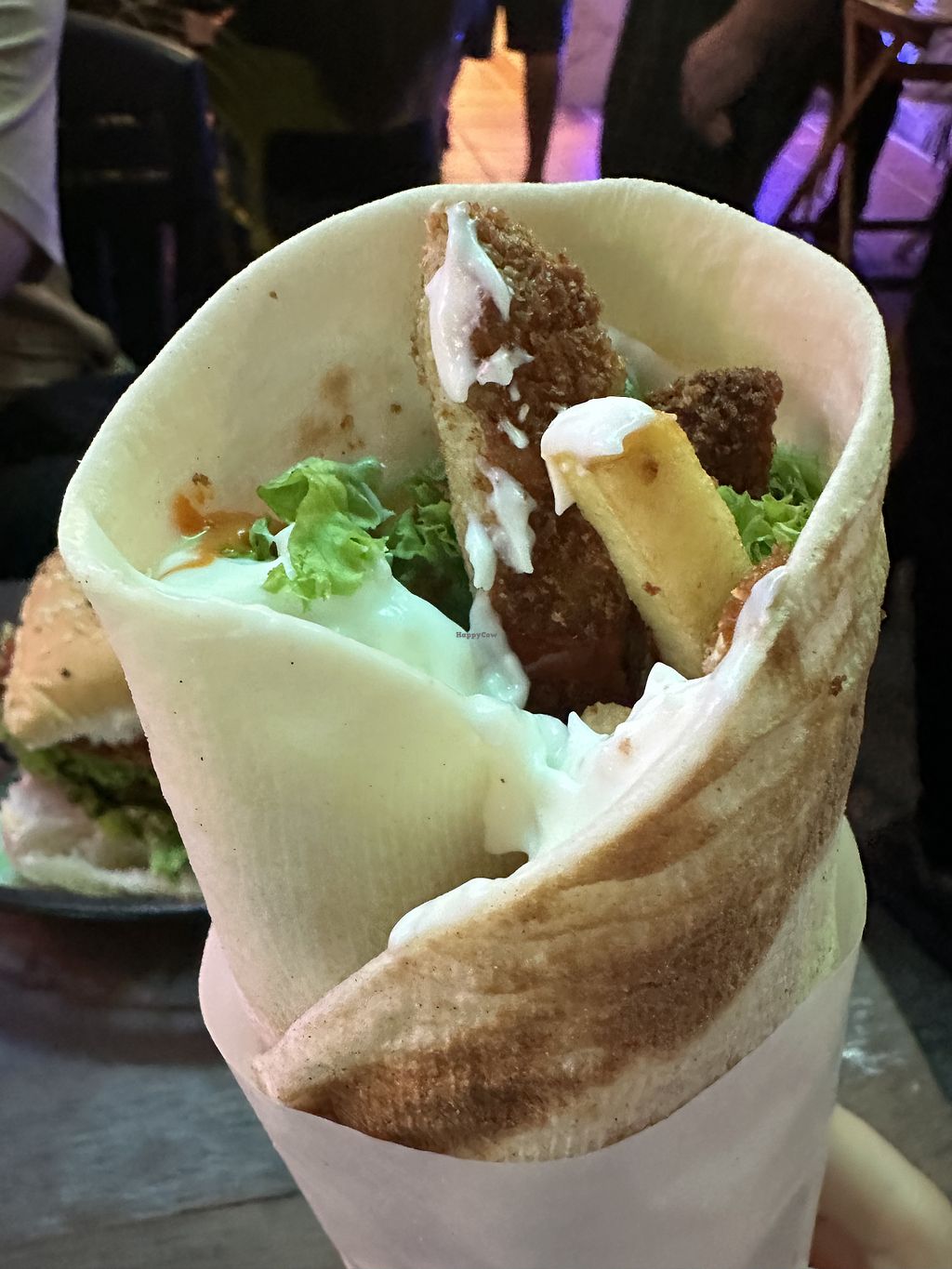 Wrap was super tasty, non-vegan original cheese pizza was about how you'd expect to get a pizza in SE Asia. However, they forgot our fries and it took a good 25-30ninutes to get our food.