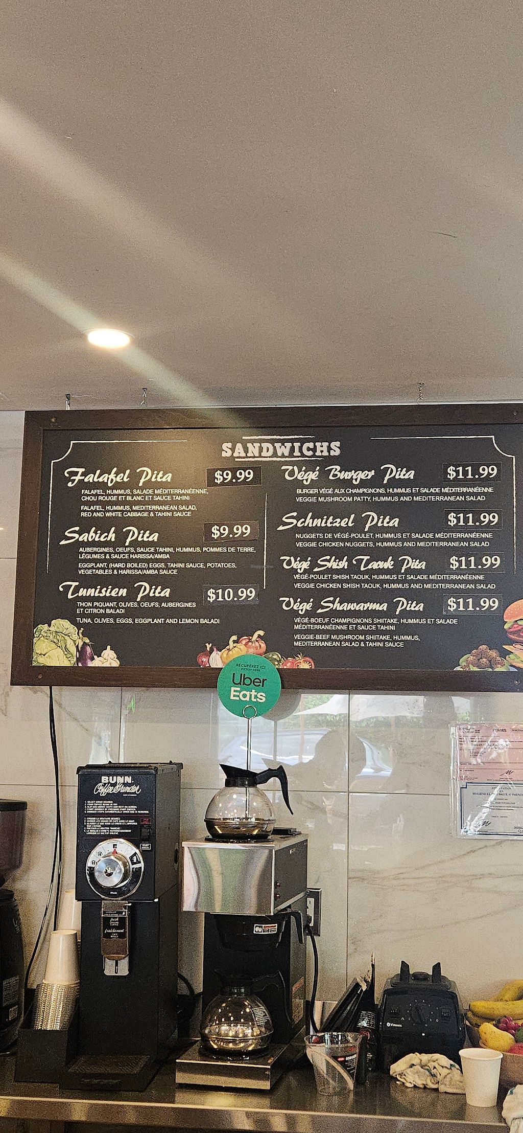 The vege pitas (poultry, shawarma, etc) are amazing. It’s far from Montreal but always worth the trip after a long day.