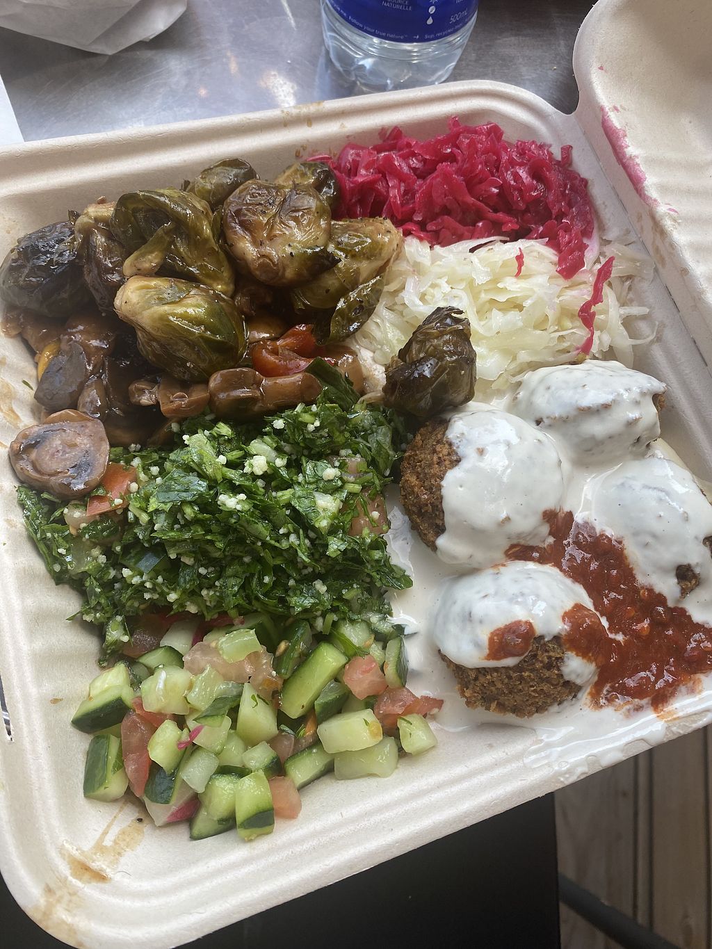 The falafel is so good and their faux meats safe even better!! They also have tons of random vegan things like baklava etc that you can get to go. Note it's a very casual mostly take out spot