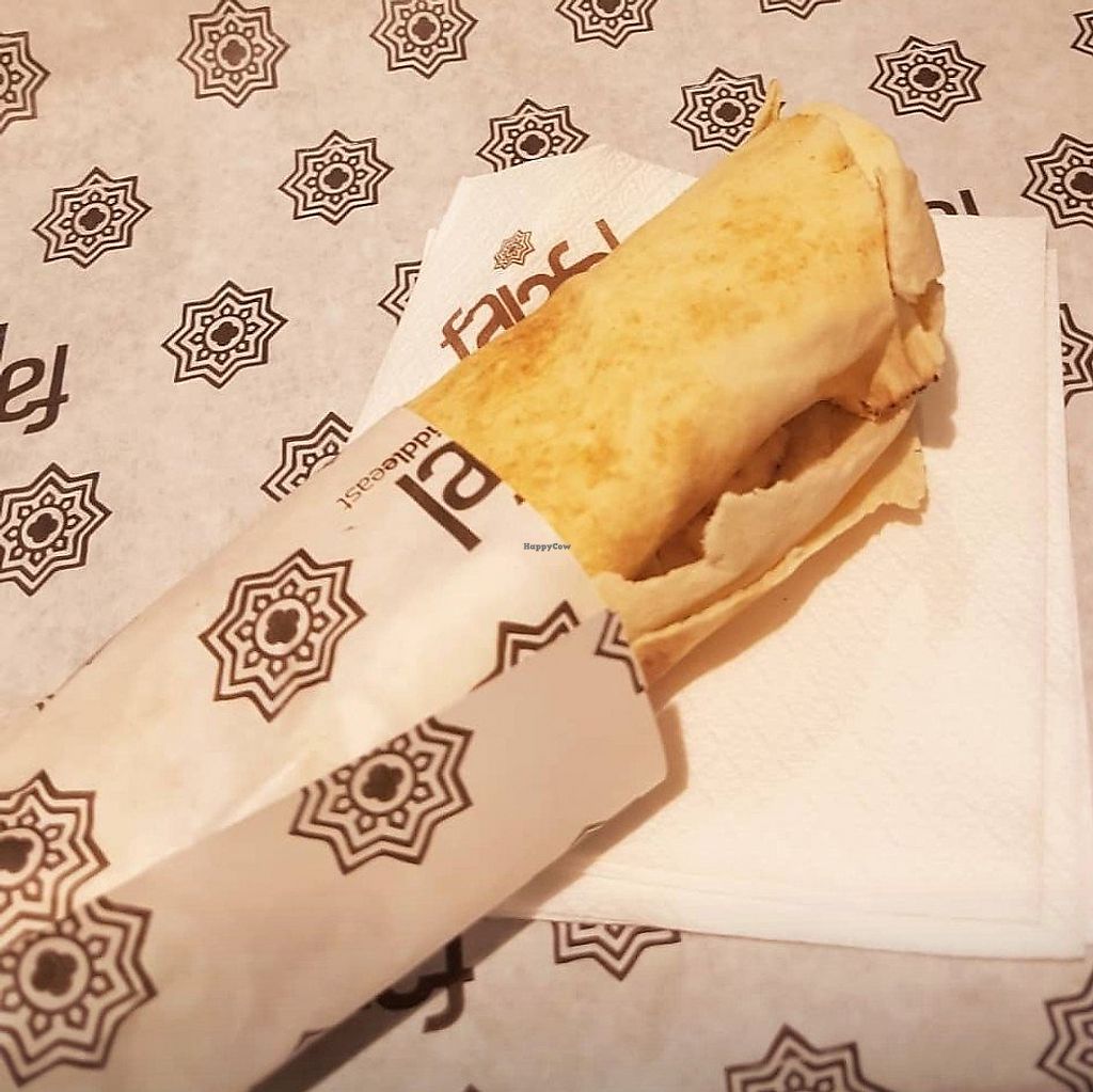 First visit to the mall! Unexpected large menu for vegans! Had the original falafal wrap! Really good! Will come back!