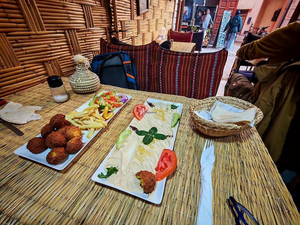 Falafel, hummus, salad and chips