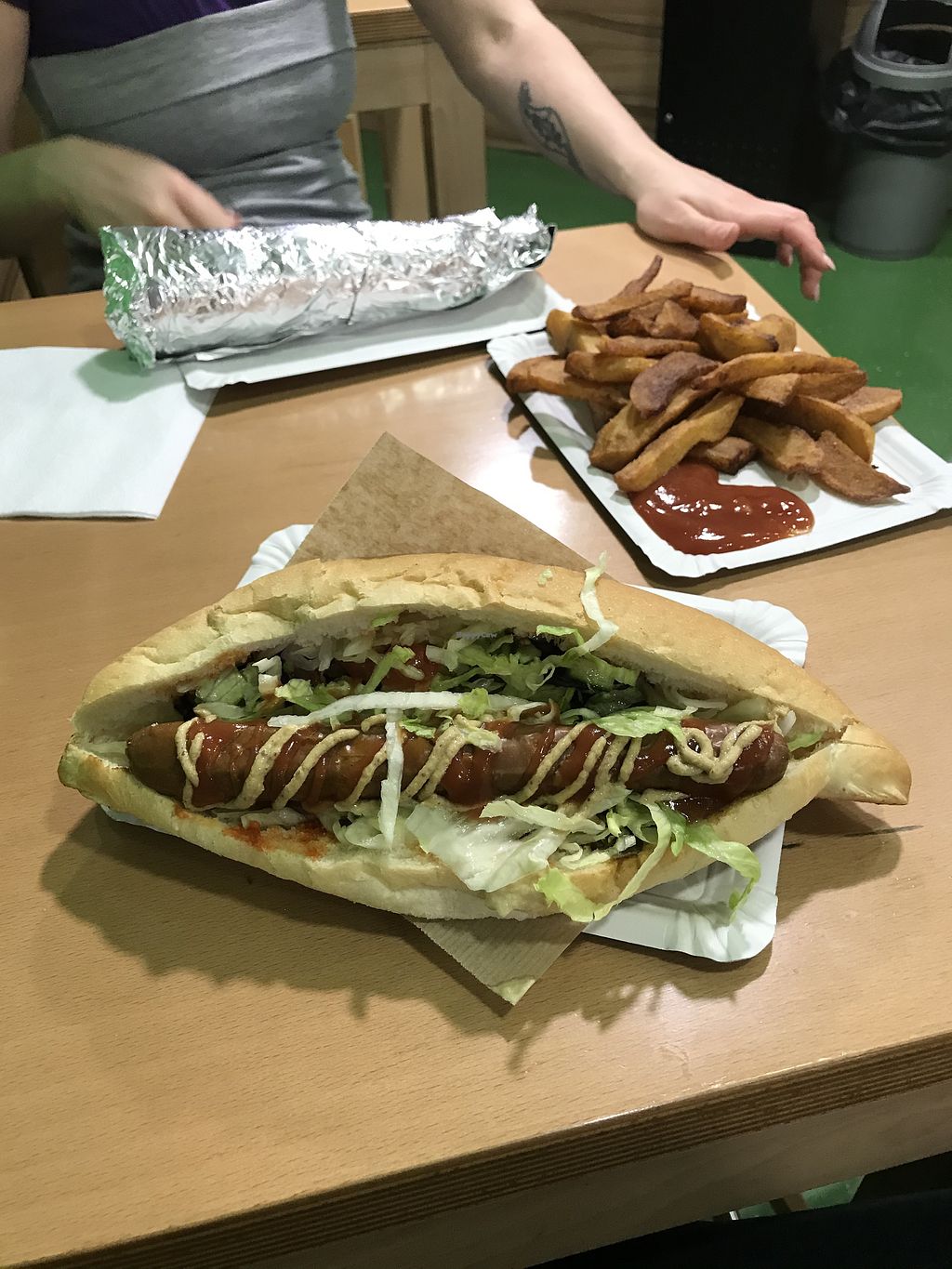 American Hot Dog and Belgian Fries.