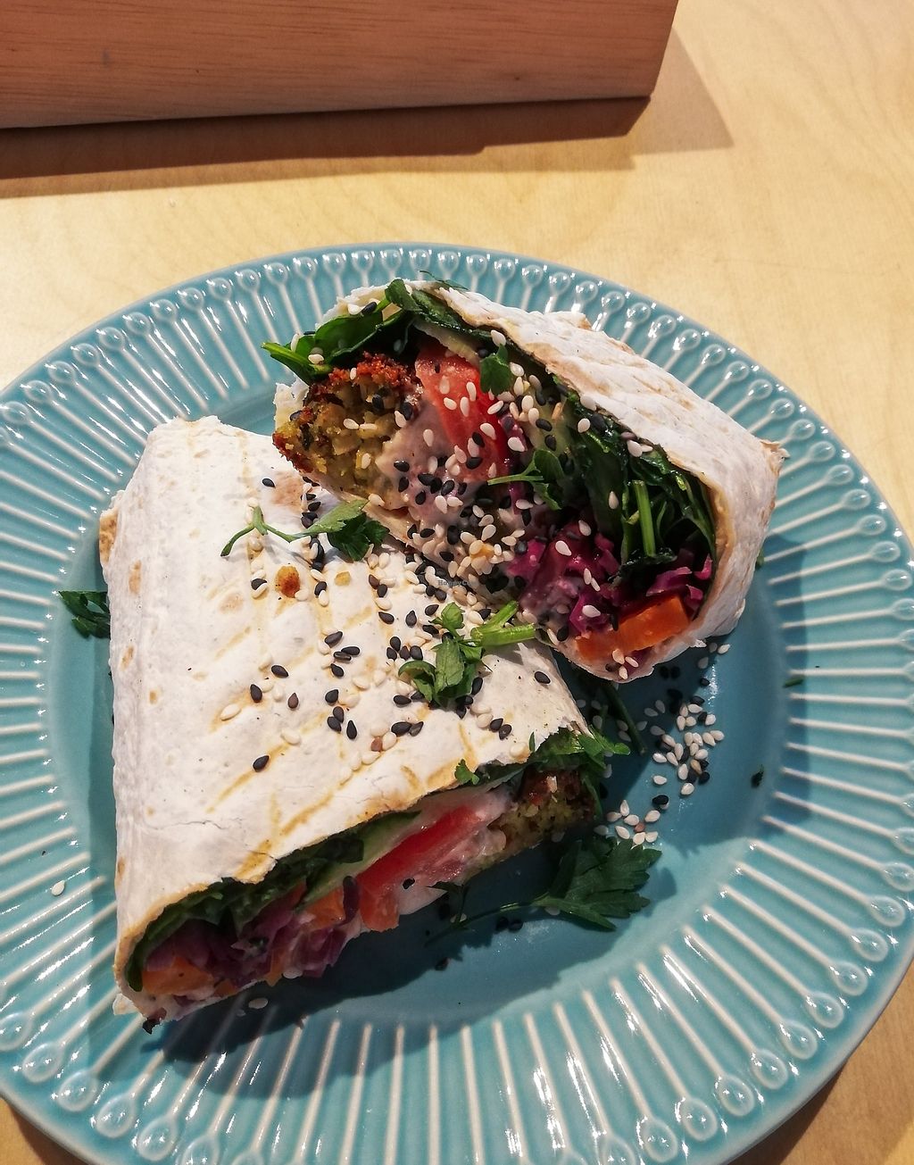 [EN] Falla is very characteristic place, where you can taste Middle East cusine. There is a lot of vegan options. My favorite is "Bling Bling Burger" with wakame. The combination of wakame with mango sauce and making a burger with this products was a brilliant idea. Stuff is very kind and helpful. I gave 4 start because of wraps, which sometimes were not as tasty as they looked like.