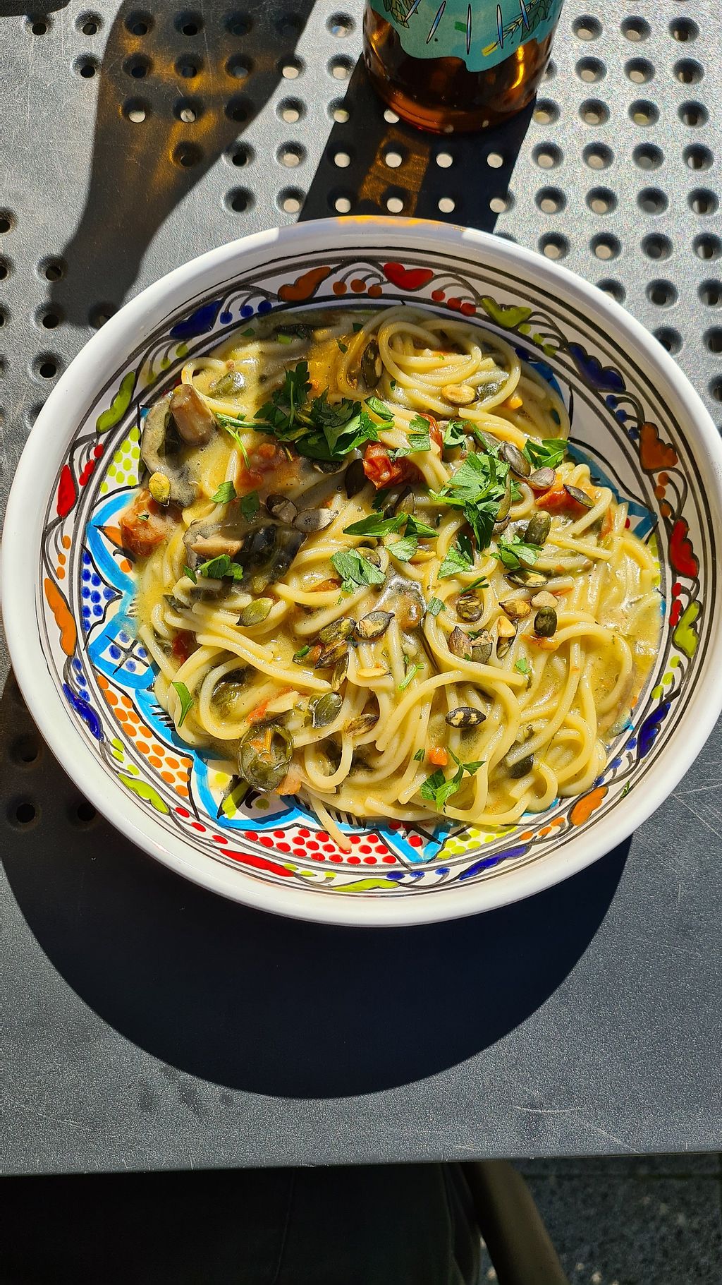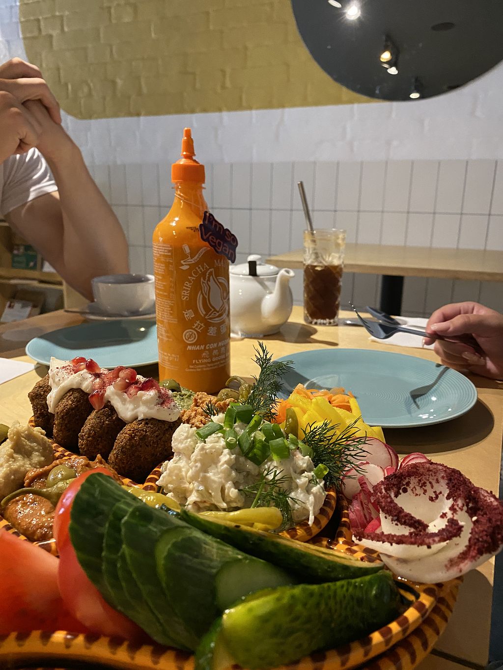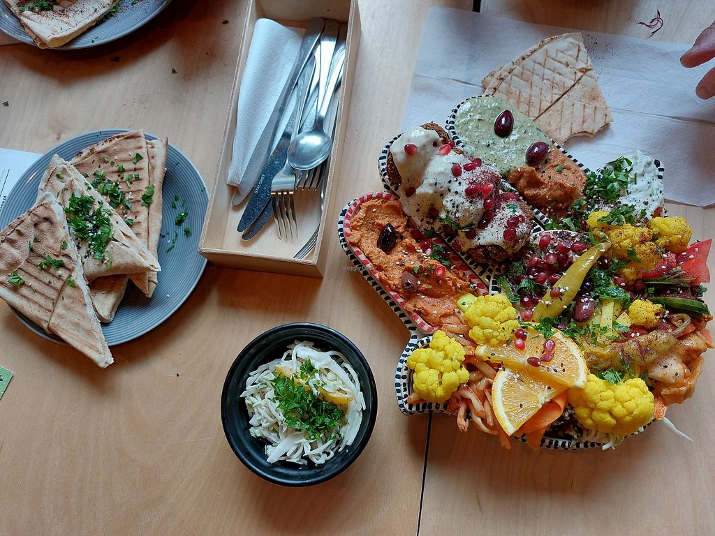 the dishes are tasty, there is a great atmosphere inside. many vegan dishes despite it being a vegetarian restaurant.