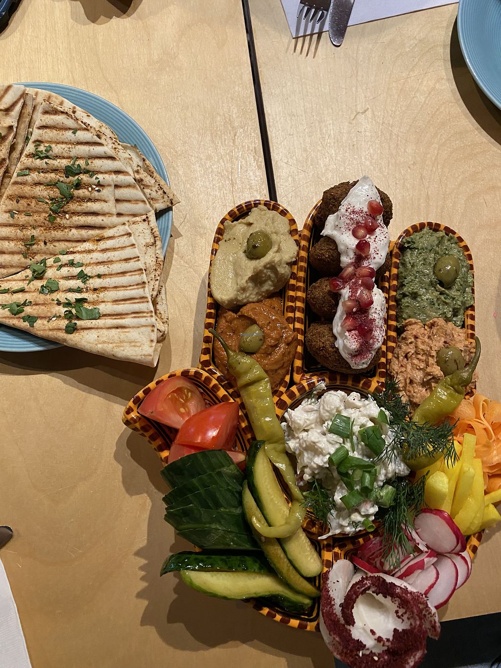 Meze plates, wraps, all made fresh to order. Overtime has gone up with prices, like everybody else, great for a quick bite!