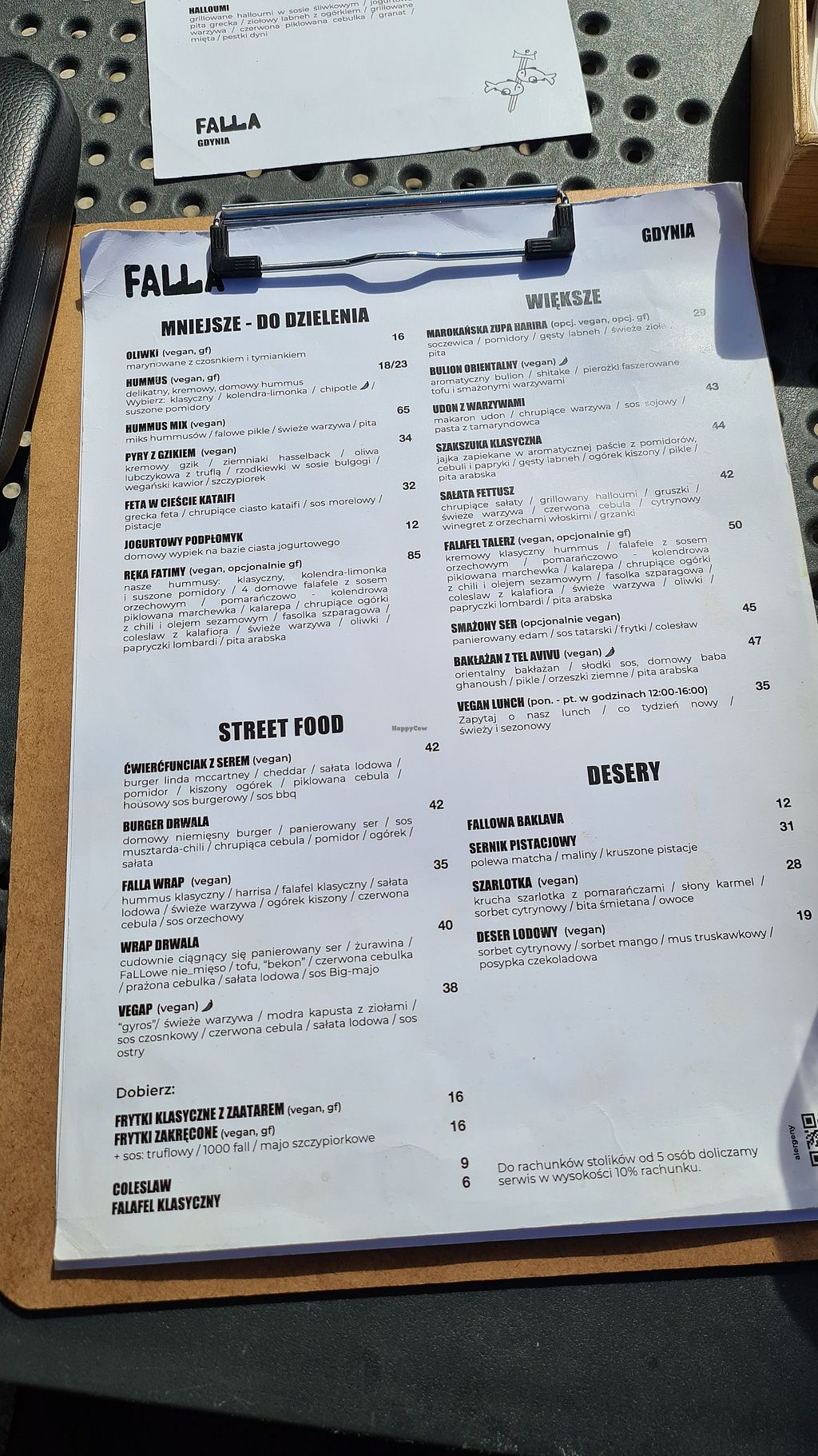 Read more[PL] Falla to bardzo specyficzne miejsce, gdzie zasmakujesz kuchni bliskiego wschodu. Jest tam kilka wegańskich opcji. Moim faworytem jest "Bling Bling Burger" z wodorostami. Połączenie wodorostów z sosem mango i zrobienie z tego burgera jest genialne. Obsługa jest bardzo miła i pomocna. Odejmuję jedną gwiazdkę za wrapy, niektóre nie były tak smaczne, jak wyglądały.