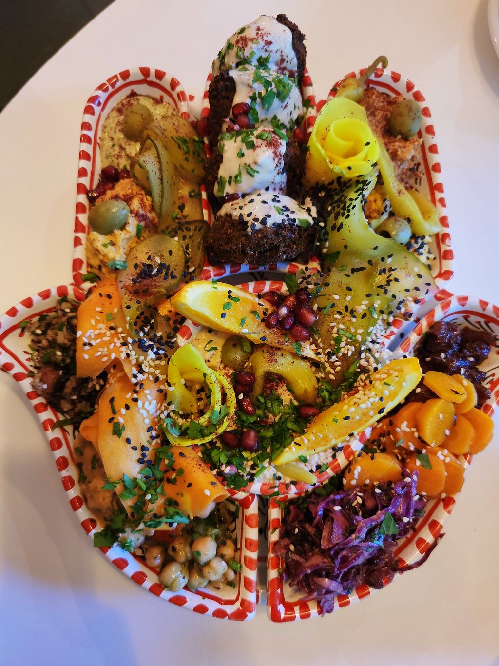 To bardzo dobra restauracja z rozbudowanym, wegańskim menu bazującym na kuchni Bliskiego Wschodu czyli dużo hummusu,pit, falafli itp. Porcje są duże a ceny też nie odstraszają. Jestem tutaj drugi raz i naprawdę uważam że restauracja daje radę 👍. Miła obsługa i atmosfera też powoduje, że chętnie tutaj wracam jak jestem przejazdem. Polecam spróbować! ⭐⭐⭐⭐⭐