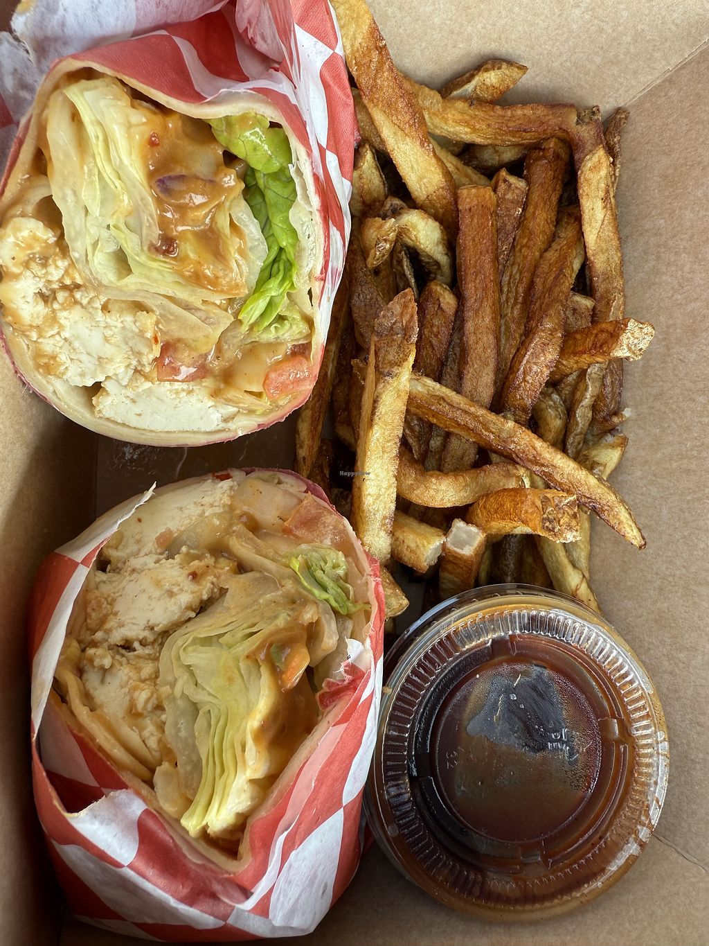 Cons: Indoor and outdoor ordering options confusing, Wrap was over sauced and a bit soggy