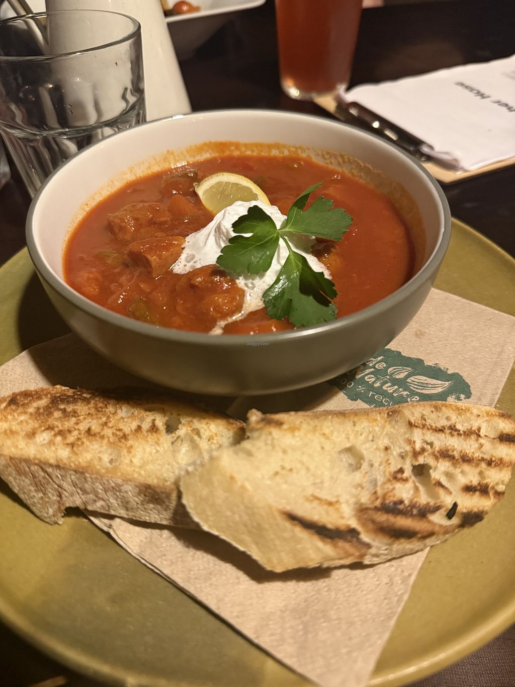 Read moreWir hatten das Seitangulasch und eine Tomatenseitanburger. Beides war lecker.