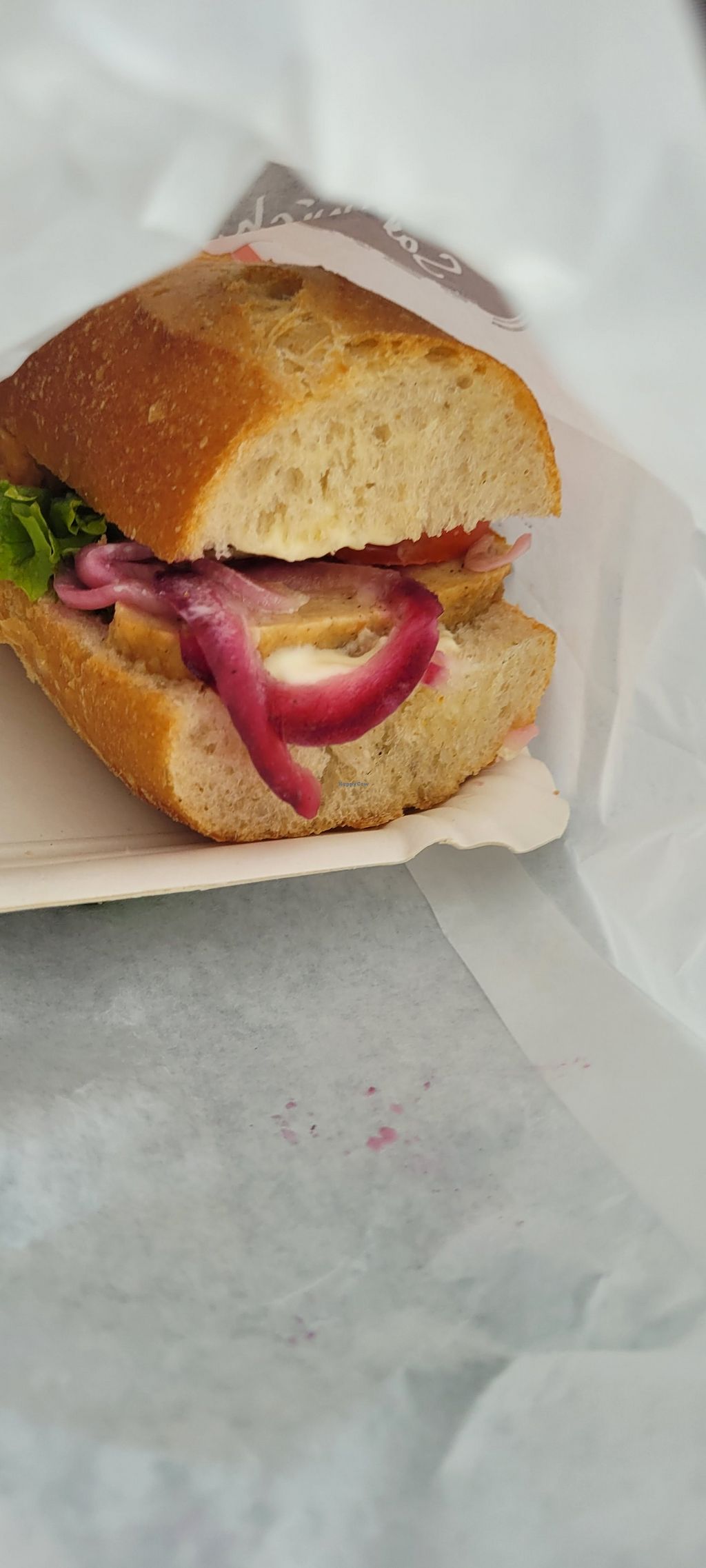 The vegan chik'n sandwich was really good, just a bit heavy on the mayo. The setting there is comfortable, and if you stay in the bakery to eat, you can get free water. But everything has a slight additional charge for eating in (legal tax reasons).