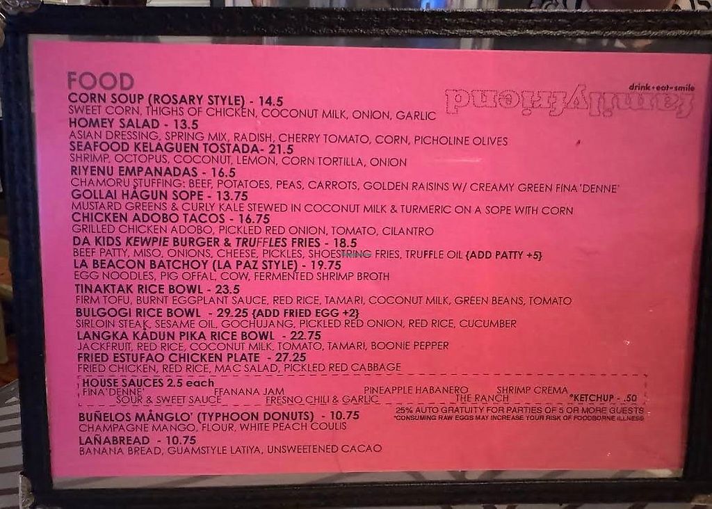 Serves meat, vegan options available. Chamorro/Filipino restaurant offering items that are or can be made vegan such as donuts, tinaktak tofu rice bowl and langka kadun pika rice bowl with jackfruit. Open Mon-Sun 5:00pm-9:30pm.