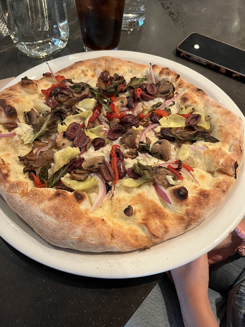 Vegan Thai pizza and Napoli salad