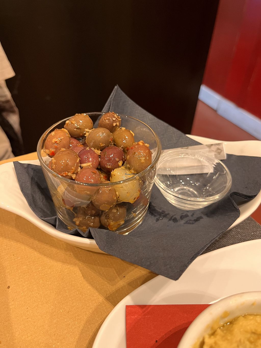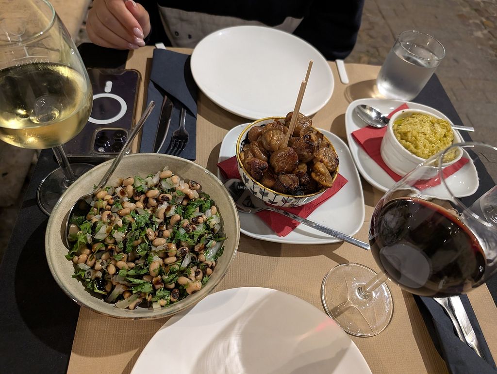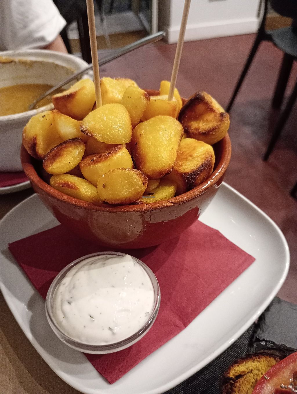 Batatas ao forno, ensalada, castanhas com cebola caramelizada, feijoad…