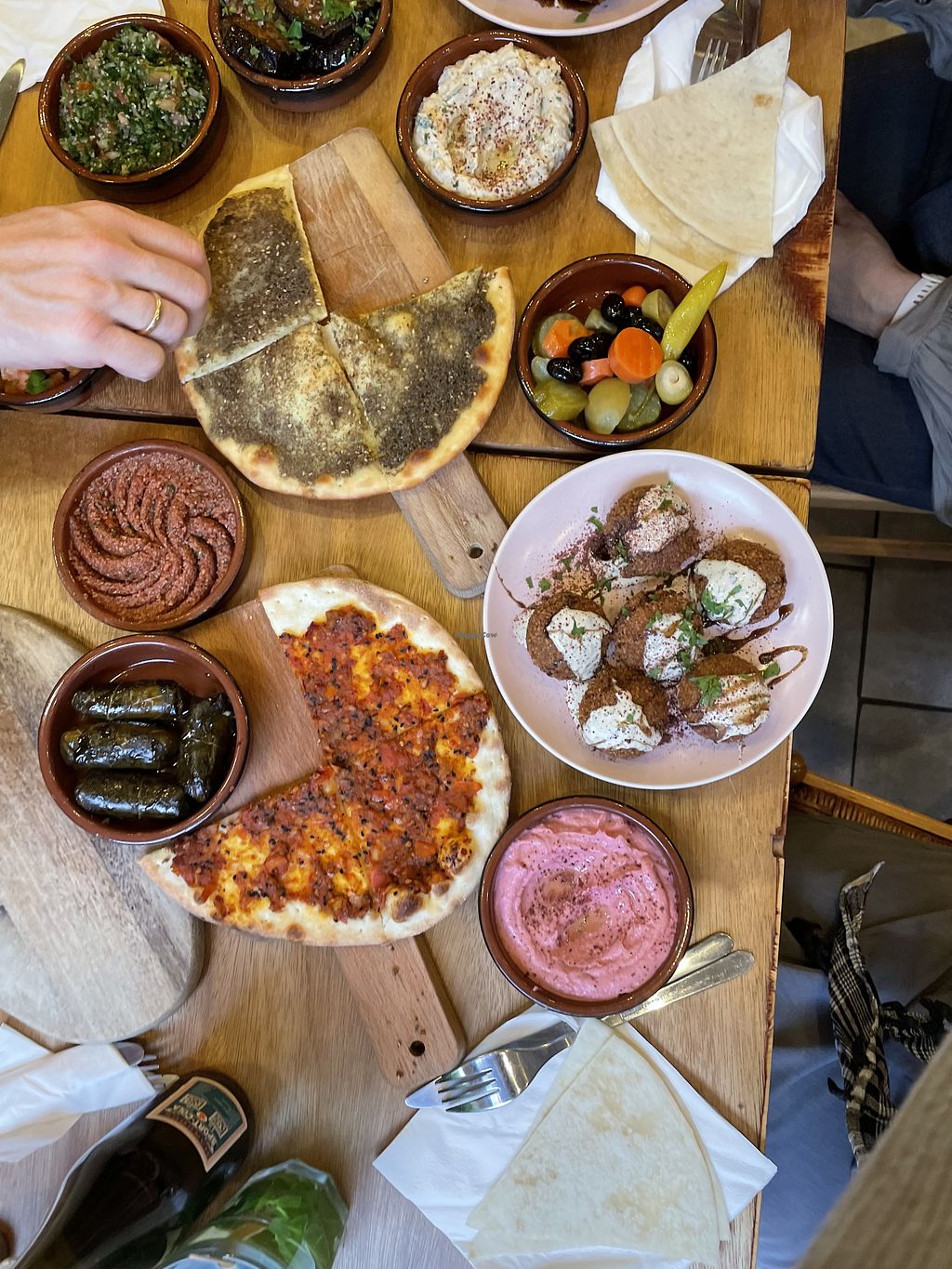 They made the Faour mezze vegan for us, which I shared with two omnies and everyone had a manakish of their choice, which was a good amount of food for 3 in the end. The staff was very helpful with ordering and accommodating, said they could make a vegan spinach, chili, onion manakish if I wanted. It seems, most people use it as a take away and there are not many tables to sit at, so it doesn't have a "going to a restaurant" ambience, so next time I go it will be because I'm down town anyway and not extra to come here for dinner from the suburbs. Probably the perfect place for lunch though.